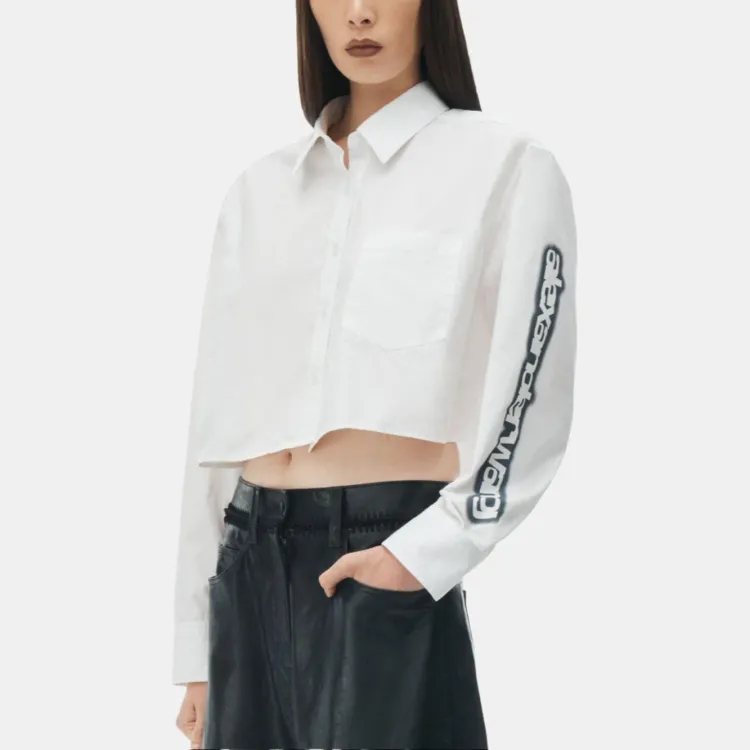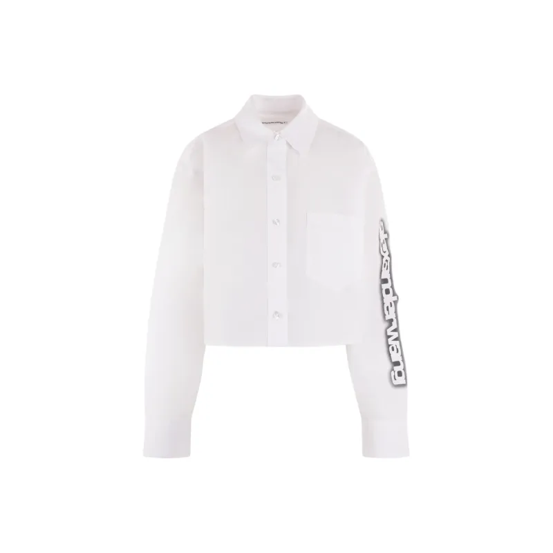 Alexander Wang HALO Принт Укороченная Рубашка с Кнопкой и Высоким Вырезом Женская Белая