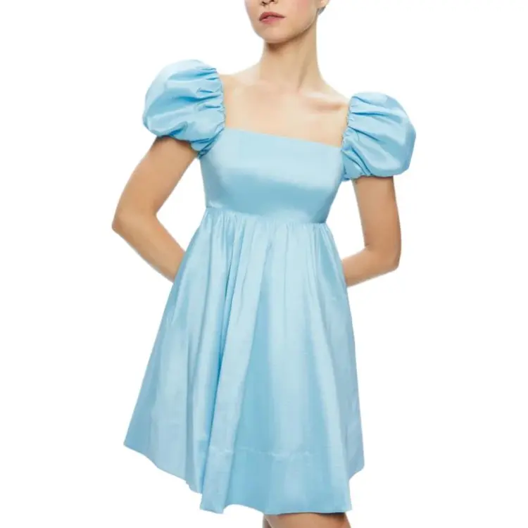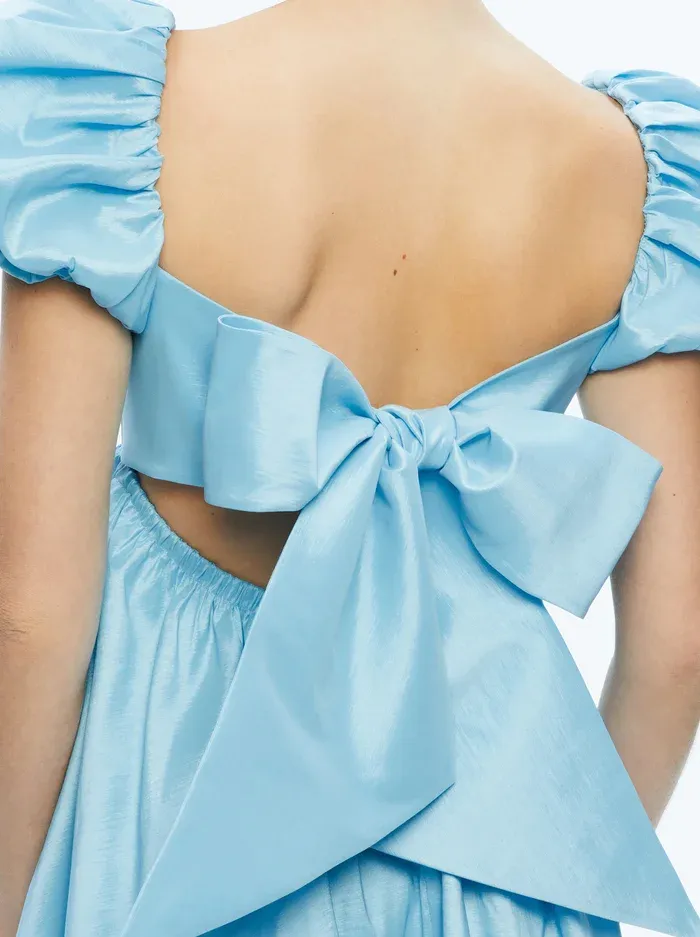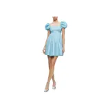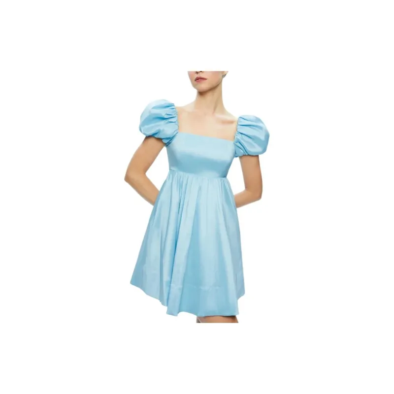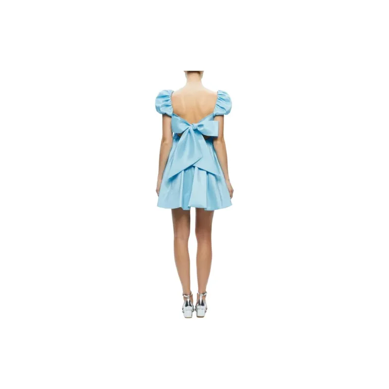 ALICE+OLIVIA Sharilyn Пузырьки Рукав Галстук Спина Мини Платье Короткий Sleeved Платье Женские Синий