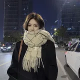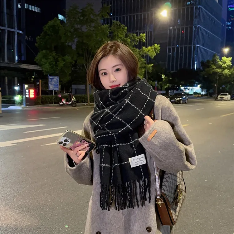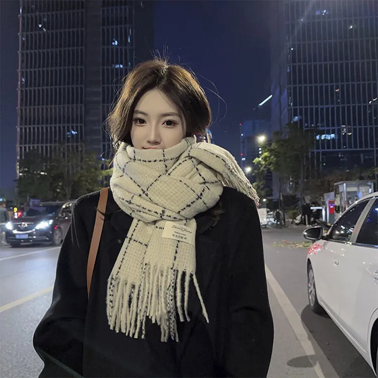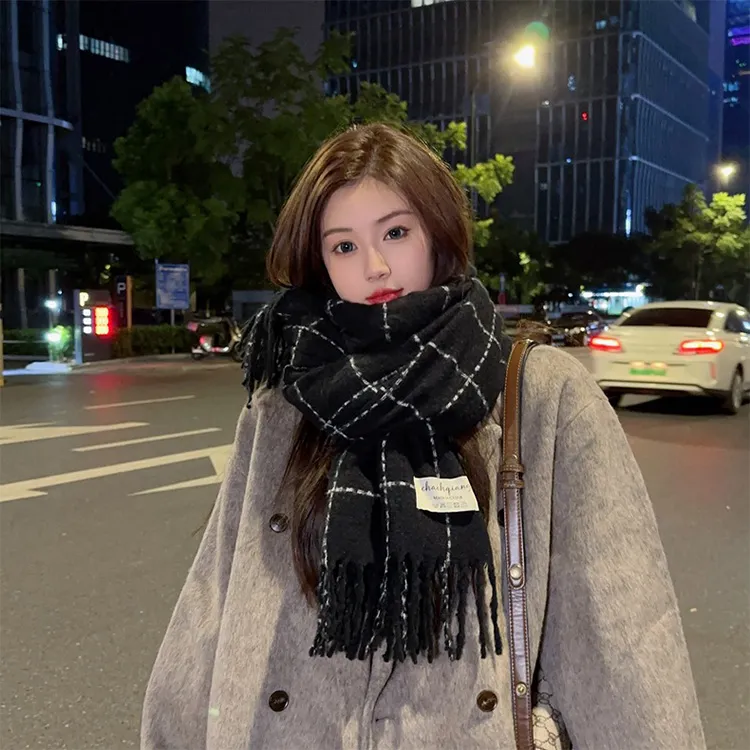 ALIEN BANG Искусственный кашемир Вязаные шарфы Унисекс Черный Белый Цветовая схема