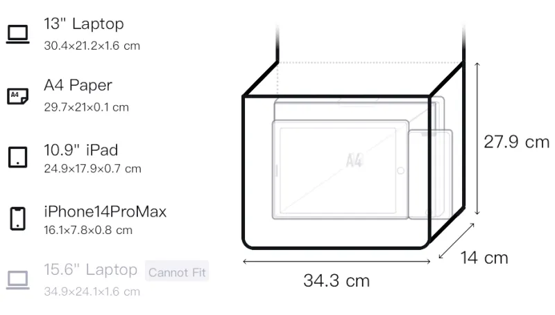 Длина 34,3 см * Ширина 14 см * Высота 27,9 см