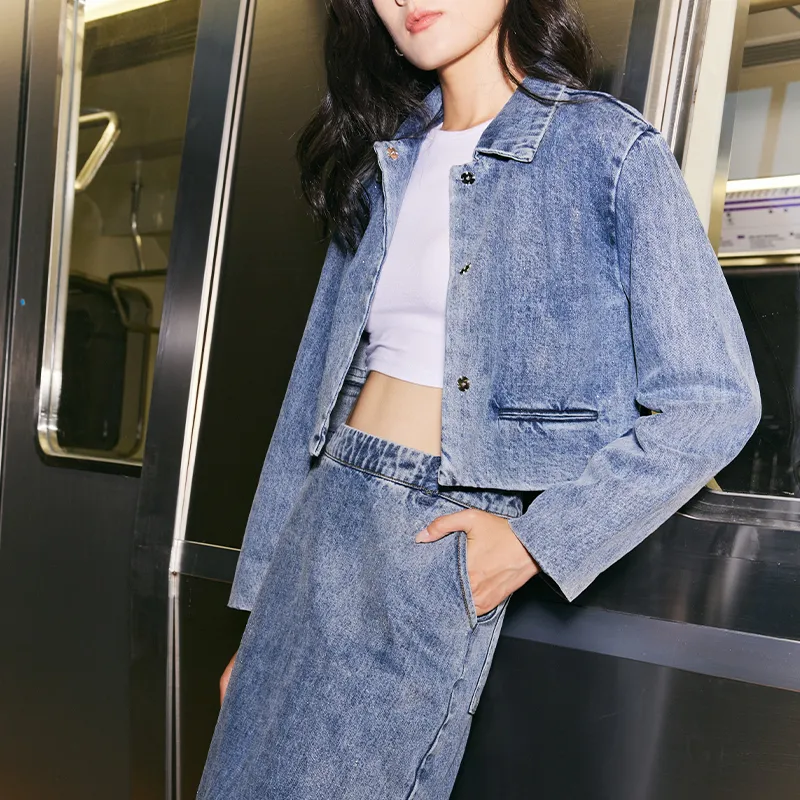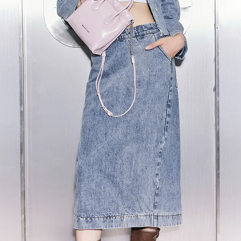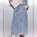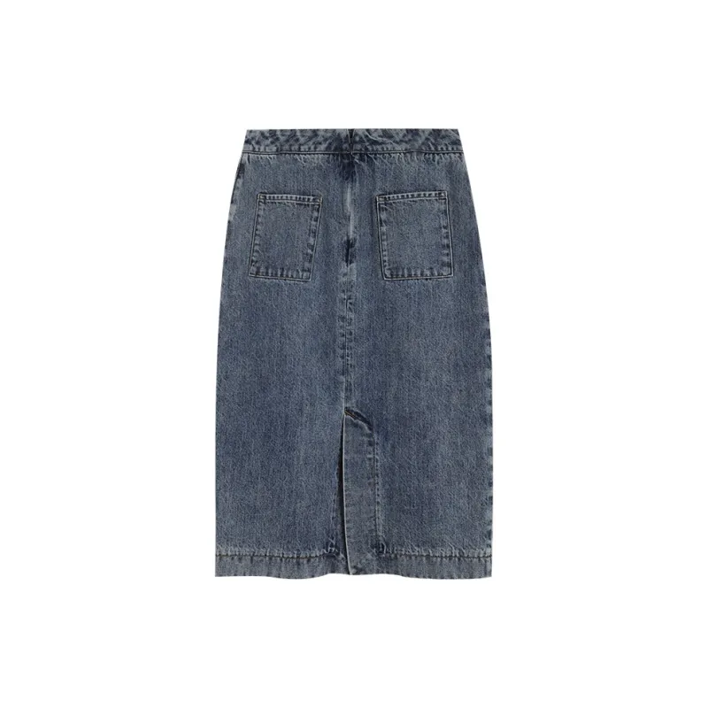 AMAZING SONG Деним Длинная Юбка Женская Выстиранный Синий