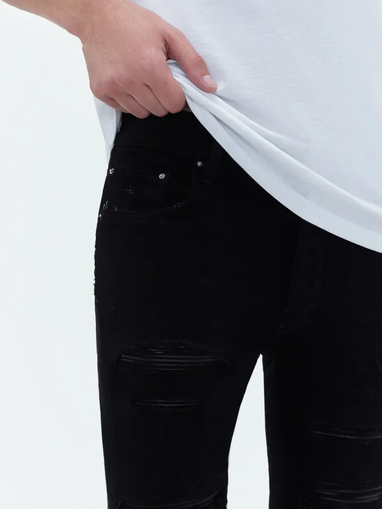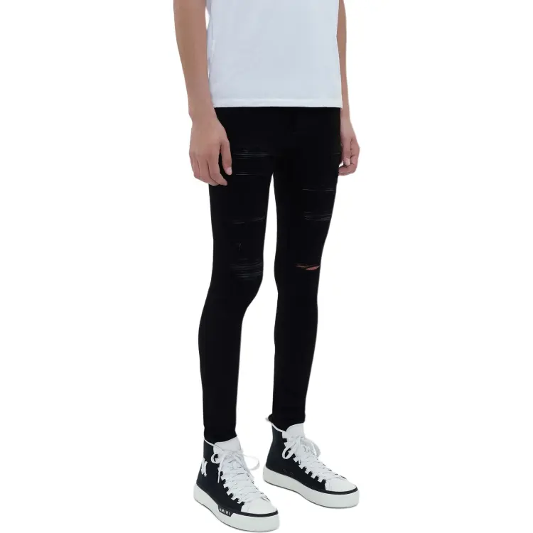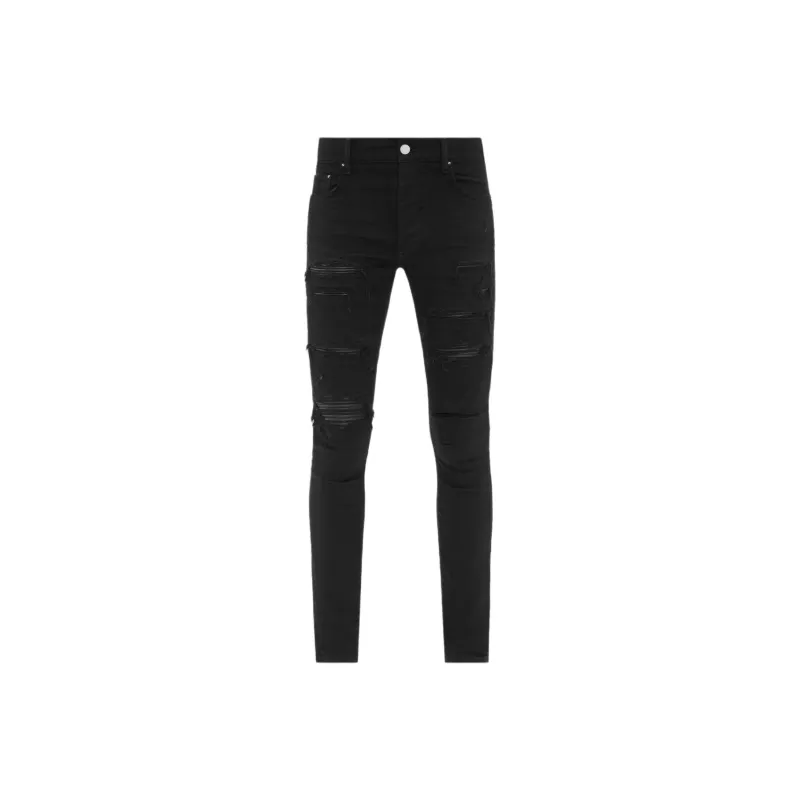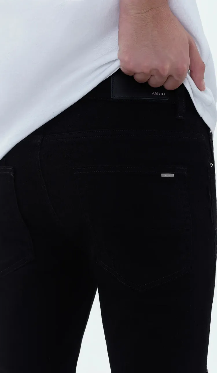AMIRI SS24 Кожа Thrasher Jean Джинсы Мужские Черные