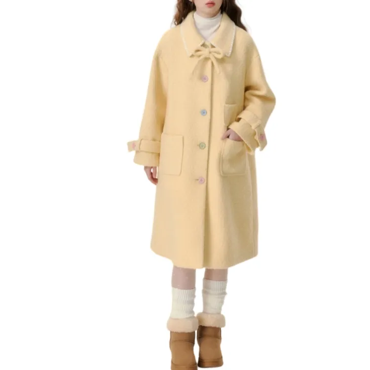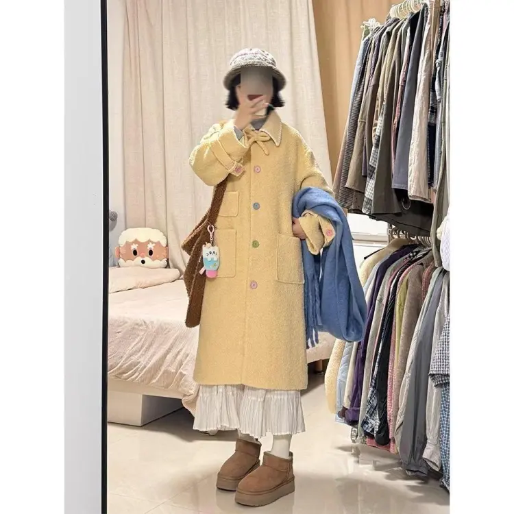 Цвет:Желтое шерстяное пальто