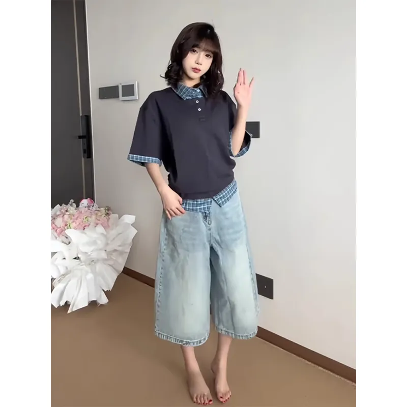 AN Ледяной синий Женские джинсовые шорты
