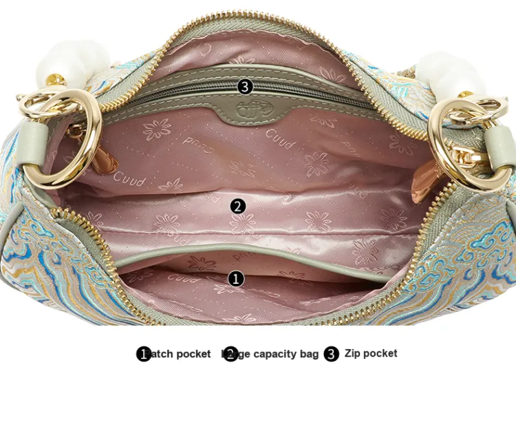 Ancient Yi Xi Полиэстер Плечевая сумка Маленькая Женская Нефритовая Небесно-синий