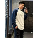 [Абрикос Синий] ATIME Пэчворк Флис Длинный рукав 230г Ткань с термическим эффектом