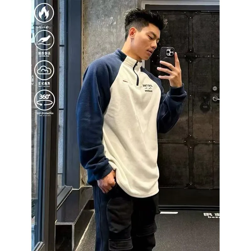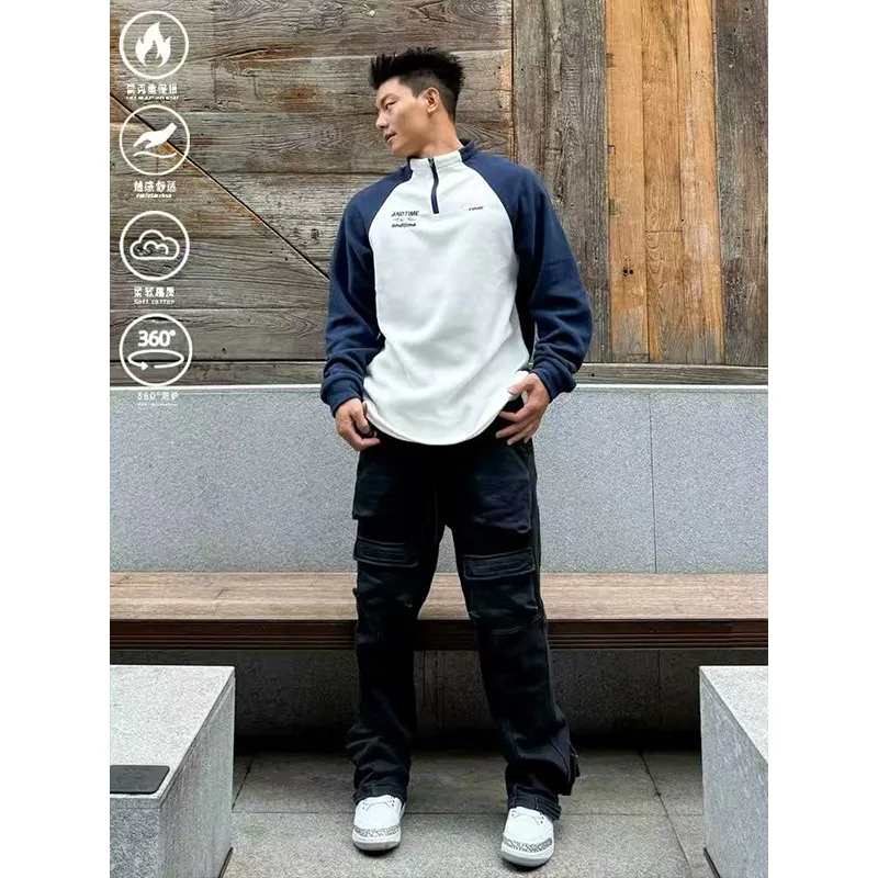 Цвет:[Абрикос Синий] ATIME Пэчворк Флис Длинный рукав 230г Ткань с термическим эффектом