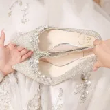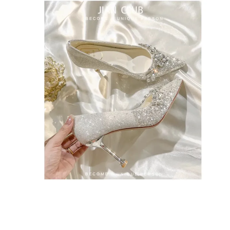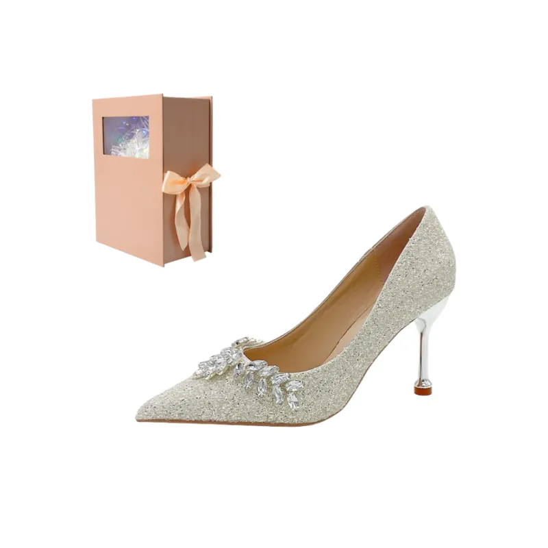 ANGEL BOY Сладкий Розовый Бант Коробка Узкий Каблук Высокий Каблук Женская Лунный Свет Серебристый