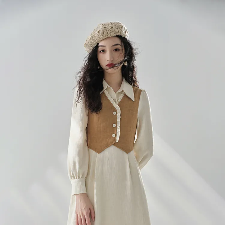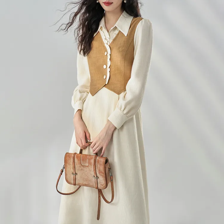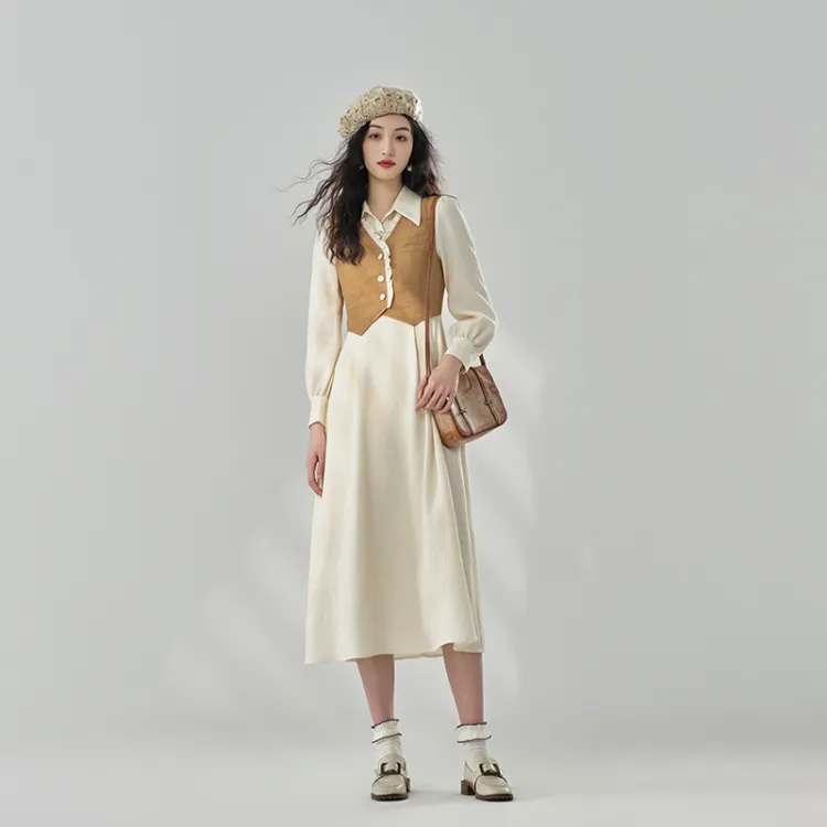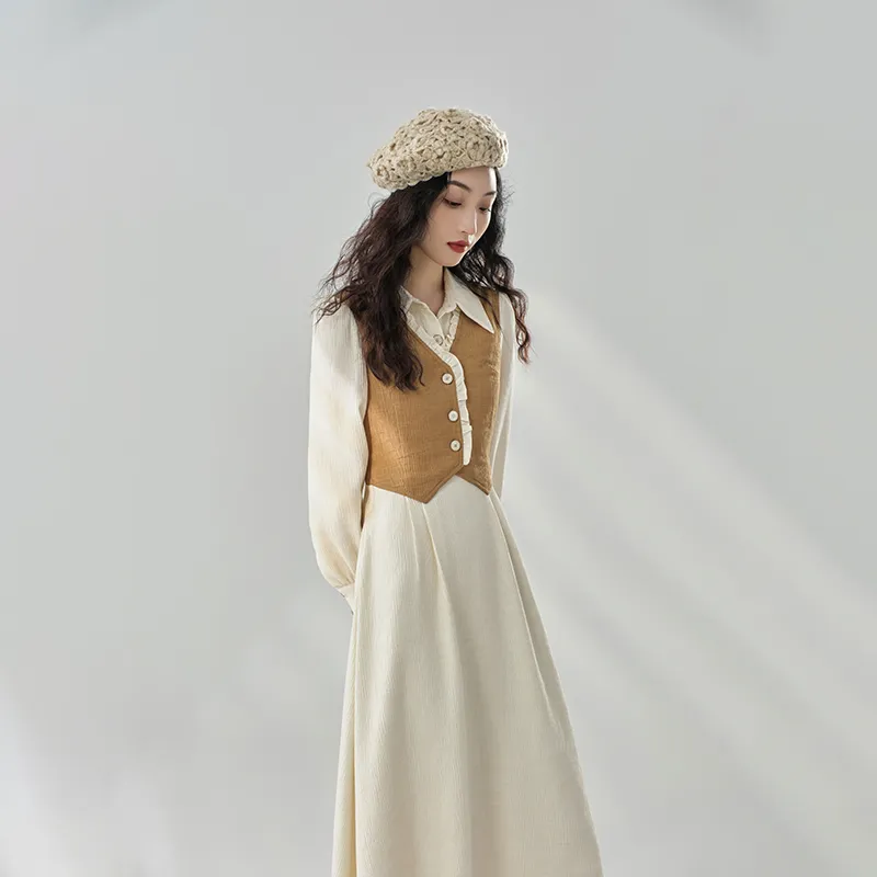 ANNECHEN RETRO Женские Длинные Платья с Рукавами