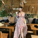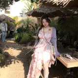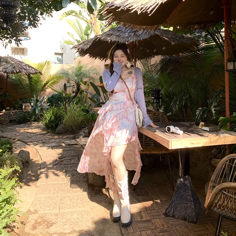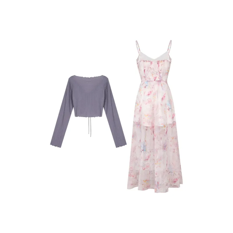 Цвет:Фиолетовый кардиган + цветочное платье-комбинация