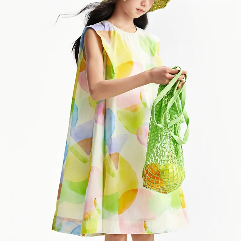 Annil Платье SS25 Белый Желтый Цветочный Дизайн Дети Возраст 3-7 Лет