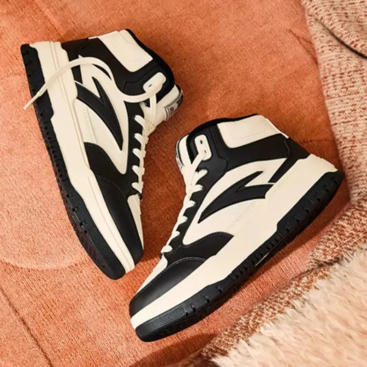 ANTA 982 Термические противоскользящие высокие кроссовки для скейтбординга женские черно-белые