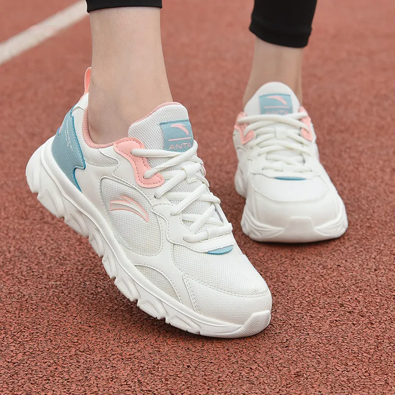 ANTA Износостойкие Дышащие Низкие Беговые Кроссовки Женские Белые Розовые