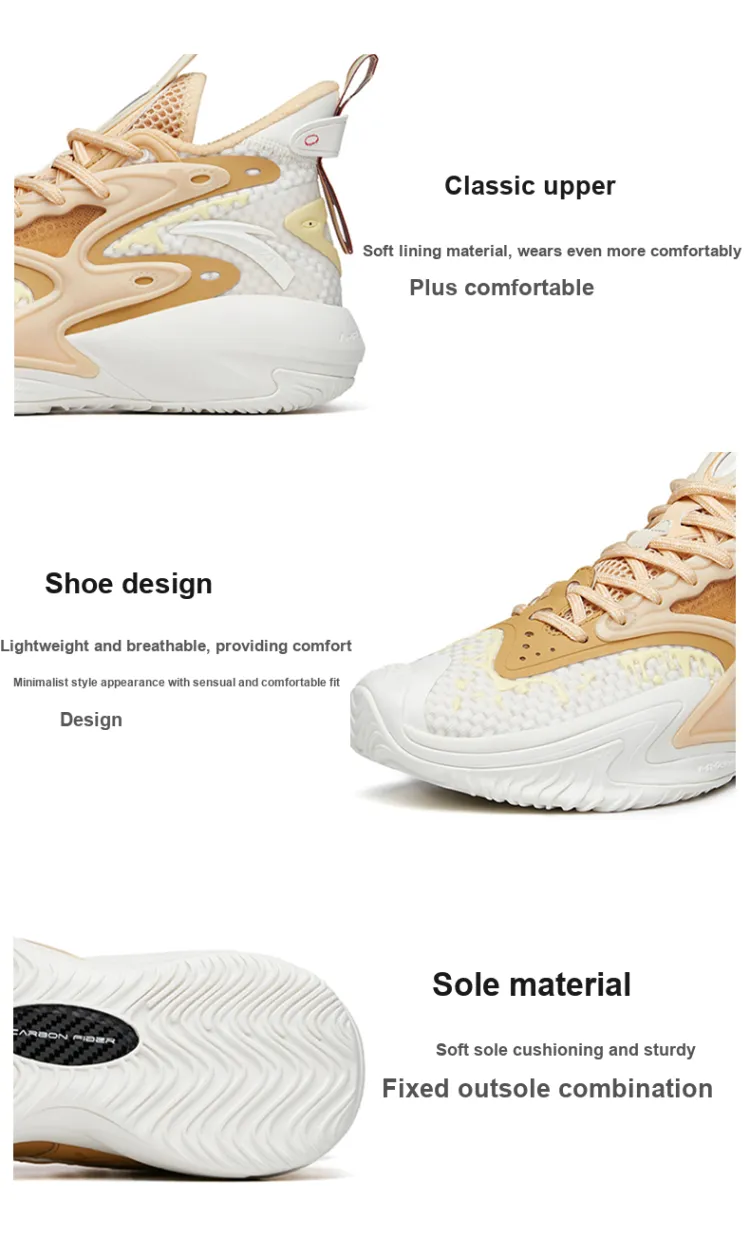 ANTA Berserk 3 Low Топ Баскетбольные кроссовки для игры Мужской Белый Золото