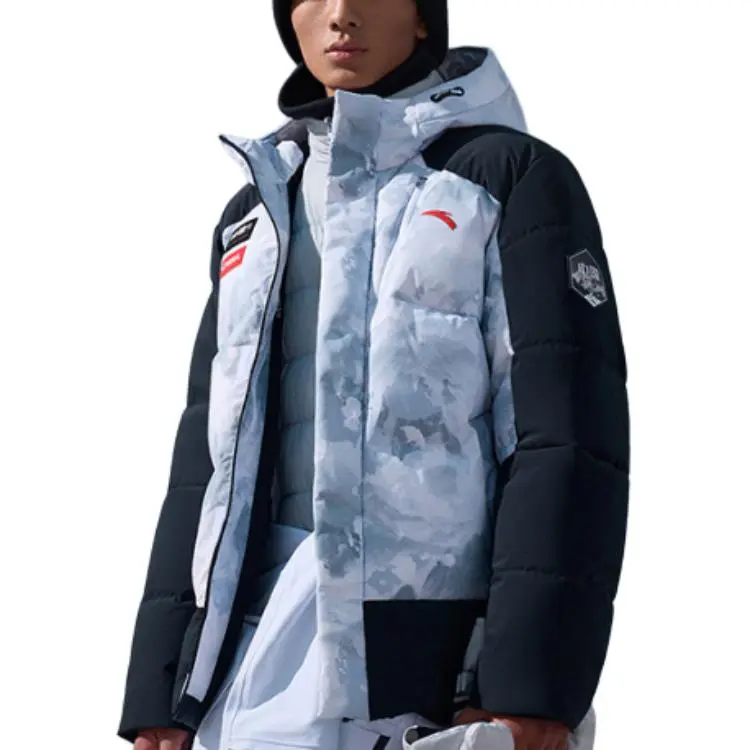 ANTA Down Jacket Men Pure White С принтом по всей поверхности Основной черный