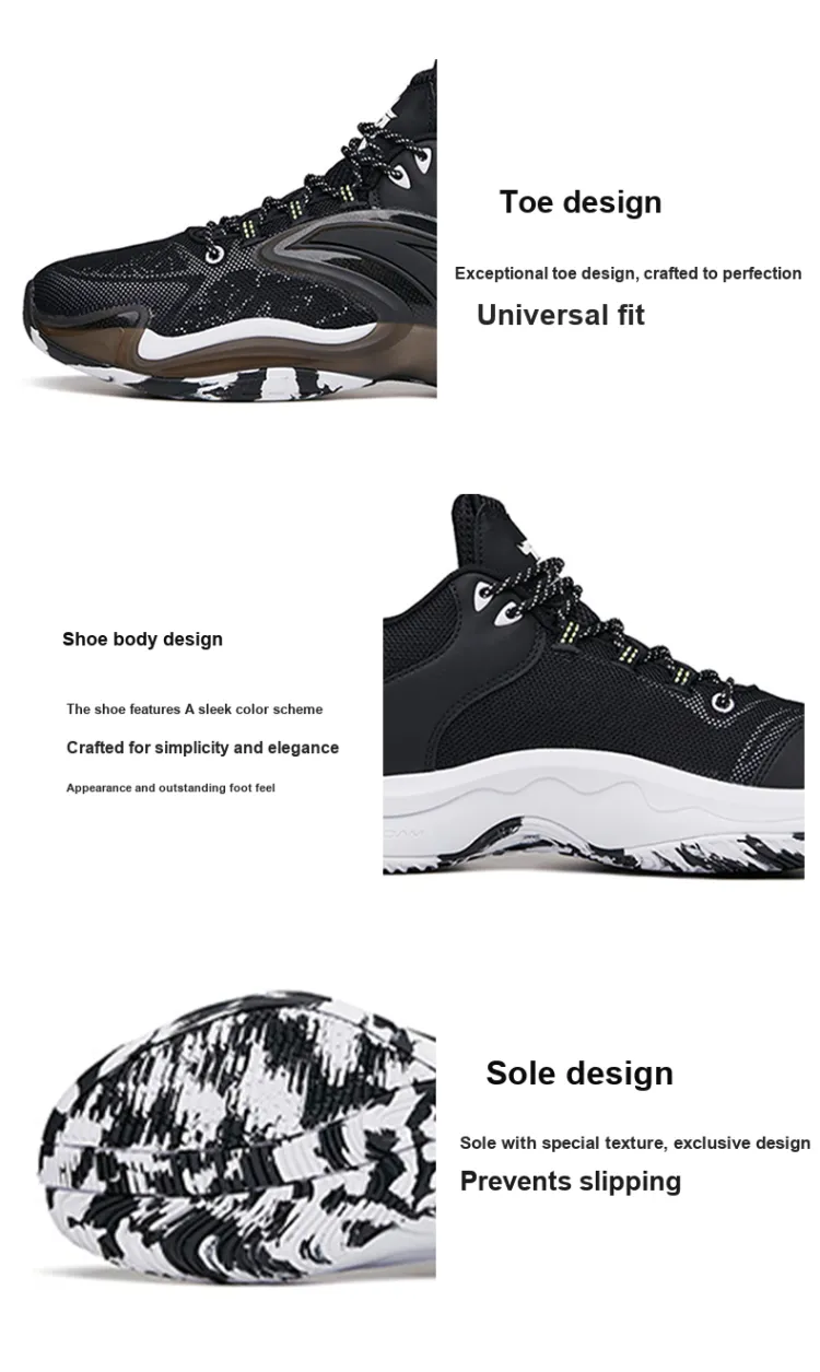 ANTA Hear Wave 3 Slip-resistant Abrasion-resistant Low-top Баскетбольные кроссовки Мужские Черный Белый