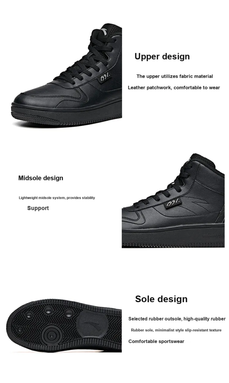 ANTA Life Collection Нескользящий Легкий MID Топ Скейтборд Кроссовки Мужские Черные