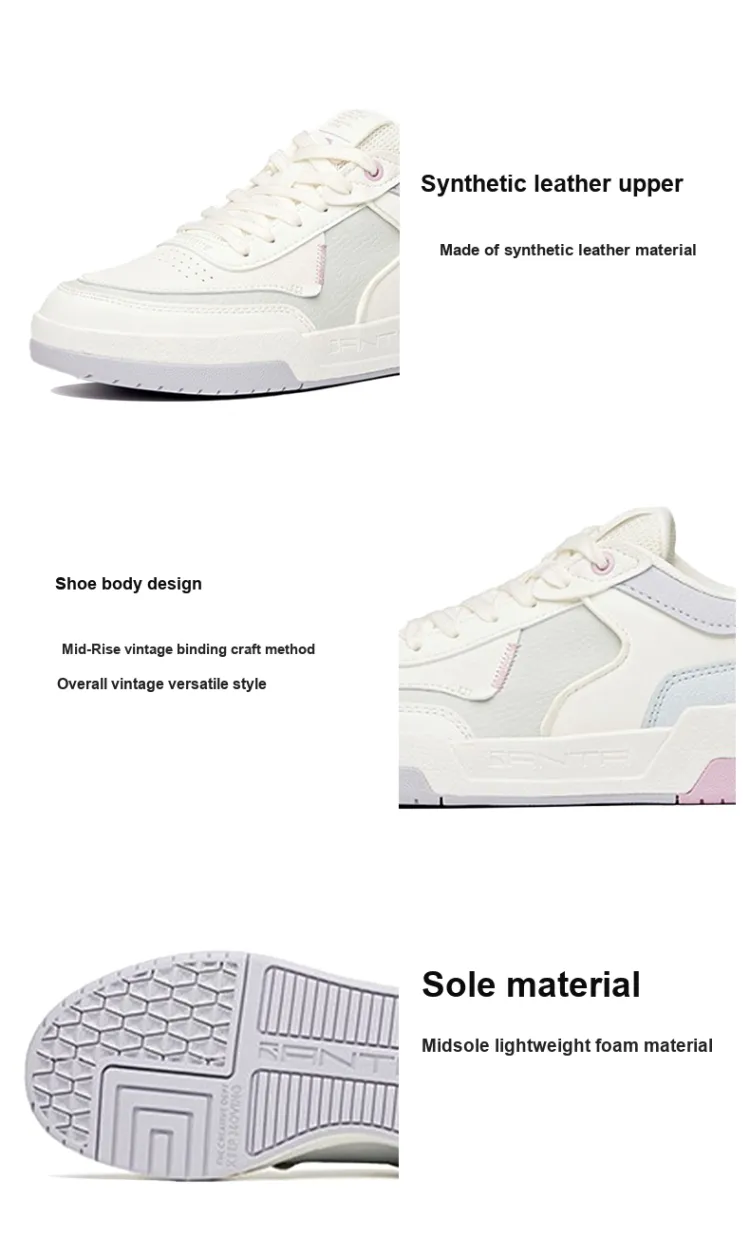 ANTA Life Collection Wafers Аbrasion Resistant Дышащий Низкий Топ Скейтборд Кроссовки Женские Белые Серые Фиолетовые
