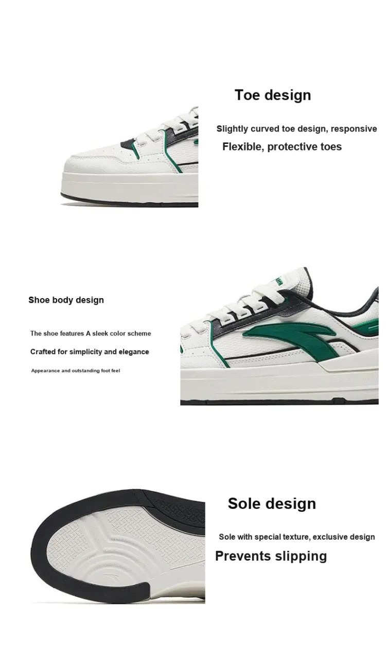 ANTA Лайт Амортизация Низкий Топ Скейтборд Кроссовки Мужские Черный Белый Зеленый