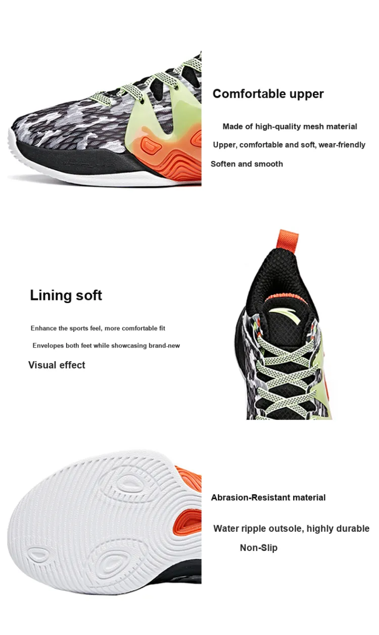 ANTA Mountain 1 Противоскользящие Устойчивые к истиранию Низкий Топ Баскетбольные кроссовки Мужские Черный Белый Оранжевый