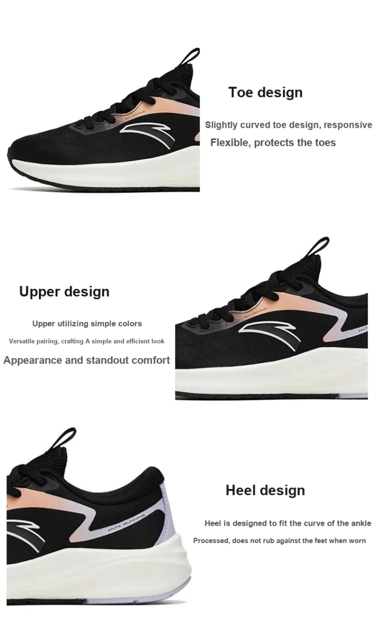 ANTA Road Run Шокаблоки Противоскользящие Устойчивые к истиранию Низкий Топ Беговые кроссовки Женские Черный Фиолетовый
