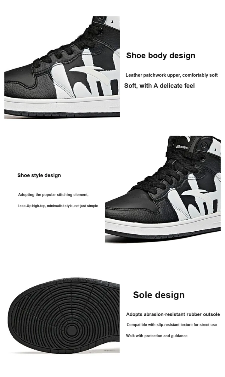 ANTA Устойчивые к истиранию Кроссовки для скейтбординга с высоким верхом Женские Черно-белые