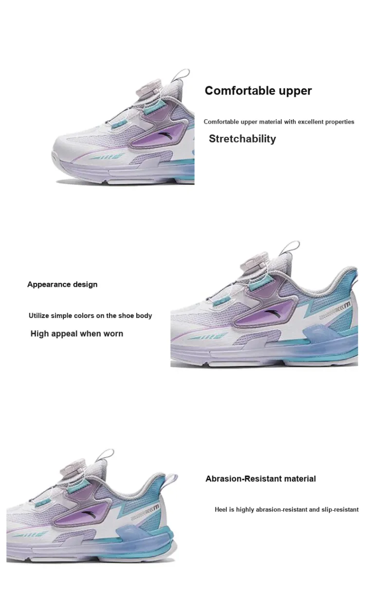 Antakids Устойчивый к истиранию Дышащий Низкий Топ Детская Беговая Обувь Белый Фиолетовый Для детей 3-7 лет