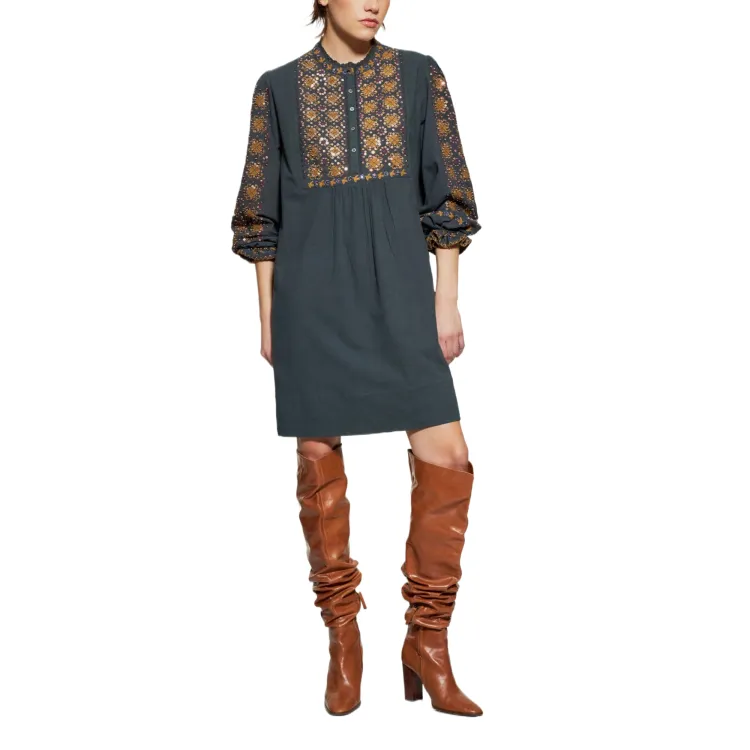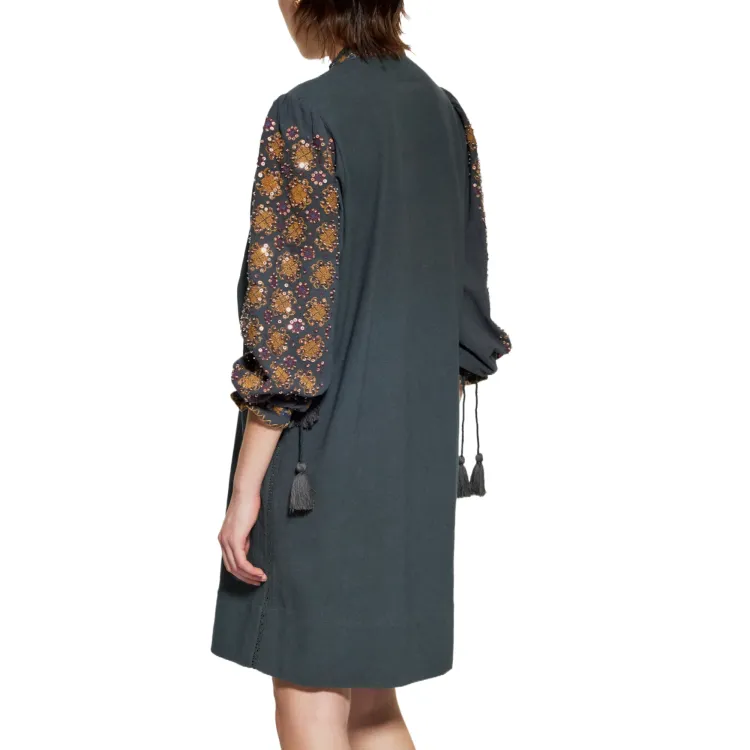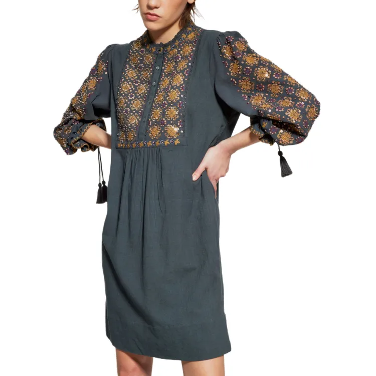 ANTIK BATIK Joana SEQUIN Вышитое Длинное Платье с Длинными Рукавами Женское