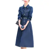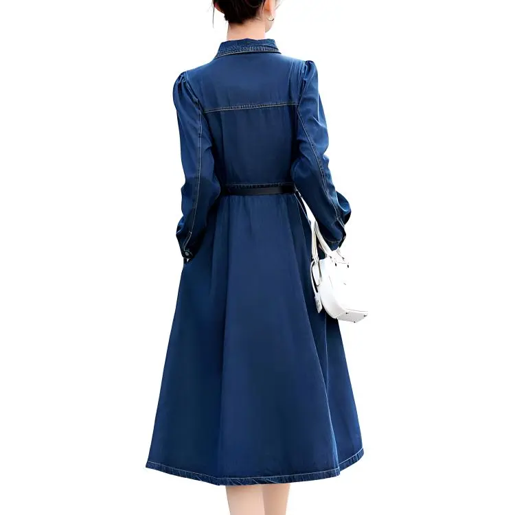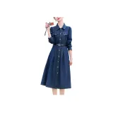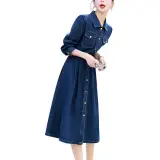Aoaifu Длинное платье с длинными рукавами женское синее