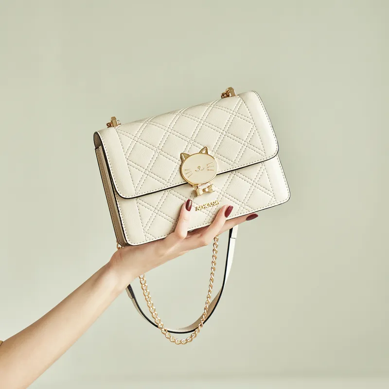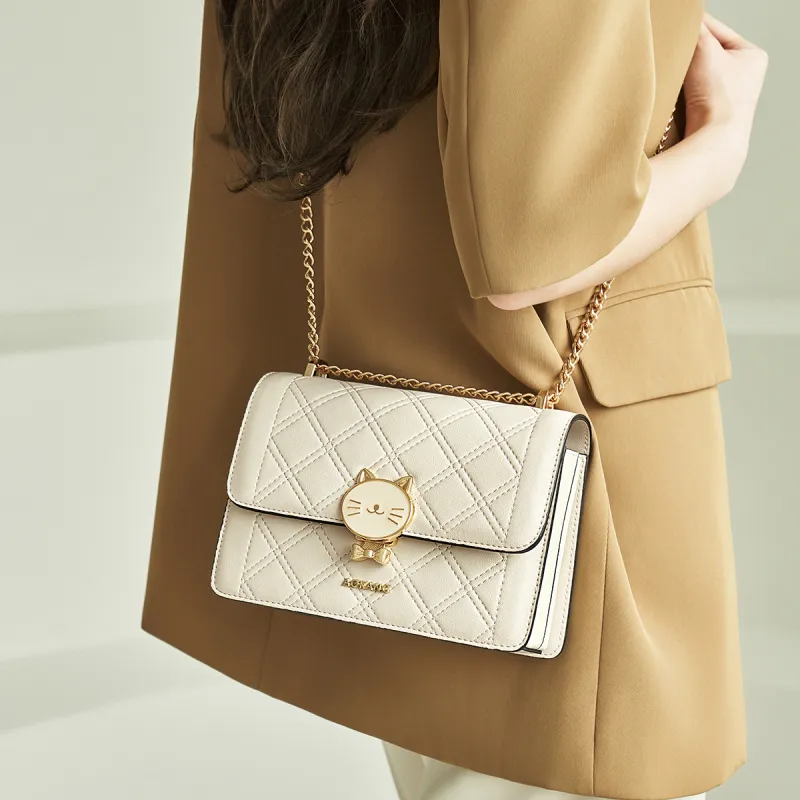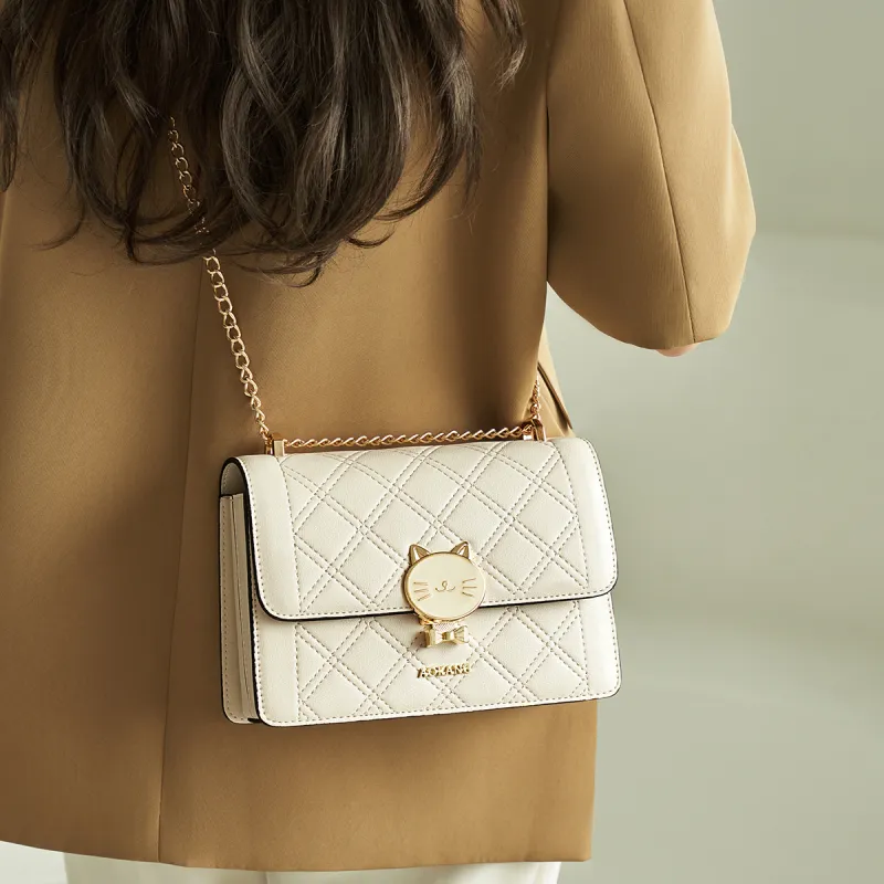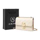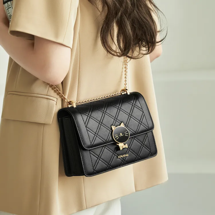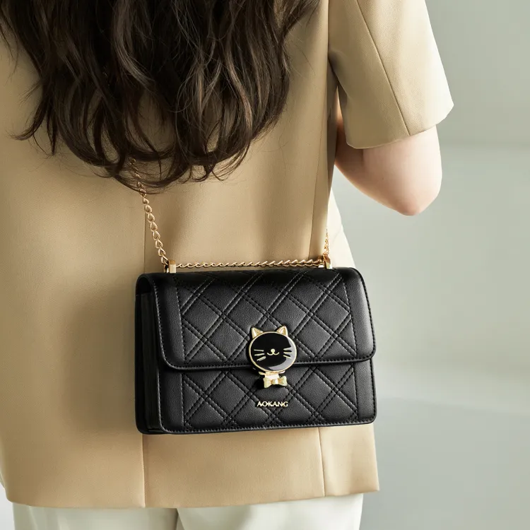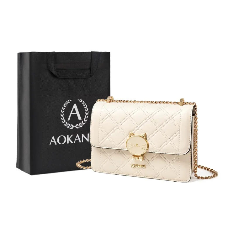 AOKANG Коровья кожа Маленькая квадратная сумка с цепочкой сумка на плечо обычная женская экрю классический черный