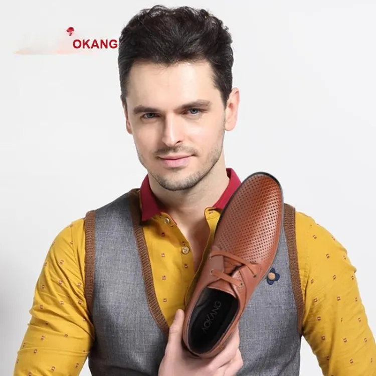 AOKANG Кожа Сандалии Мужские Повседневные Кожа Обувь Мужская Черный Верблюжий Коричневый