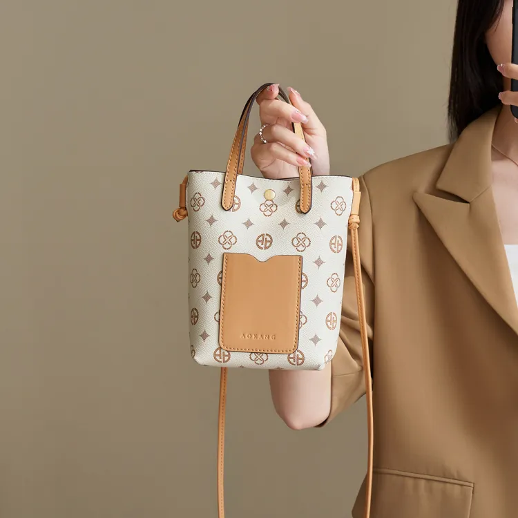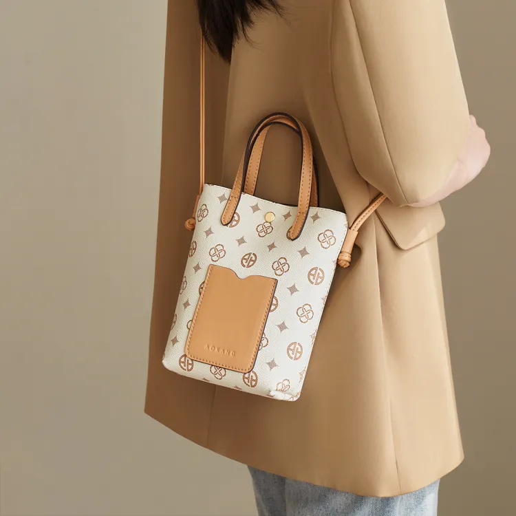 AOKANG Чехол для телефона из ПВХ сумка через плечо мини сумка женская кофейного экрю цвета