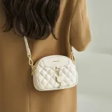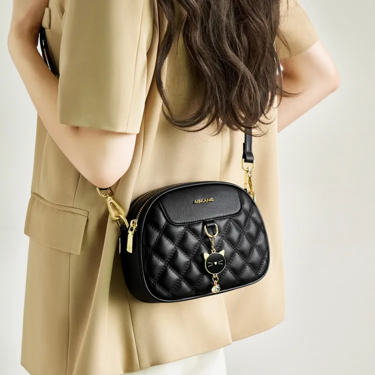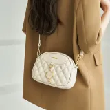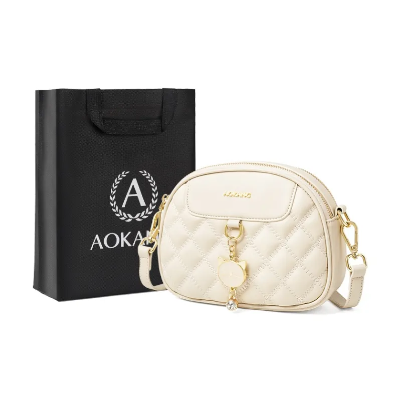 AOKANG Корова Кожа Маленькая Круглая Сумка Сумка через плечо Commuter Сумка Ромб Узор Сумка Сумка на плечо Стандартная