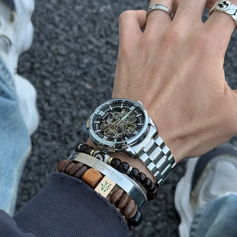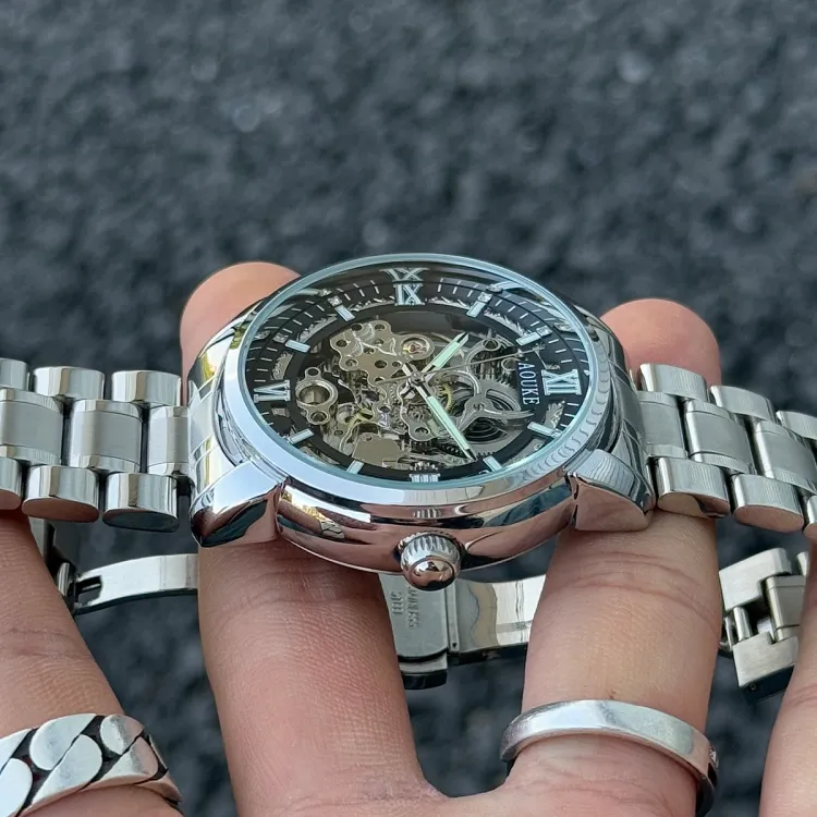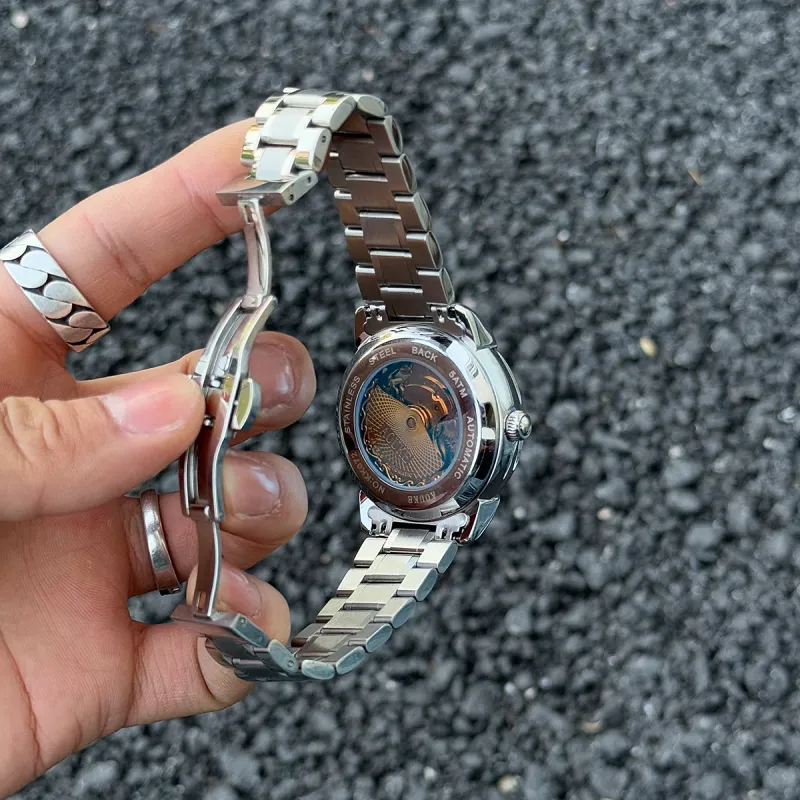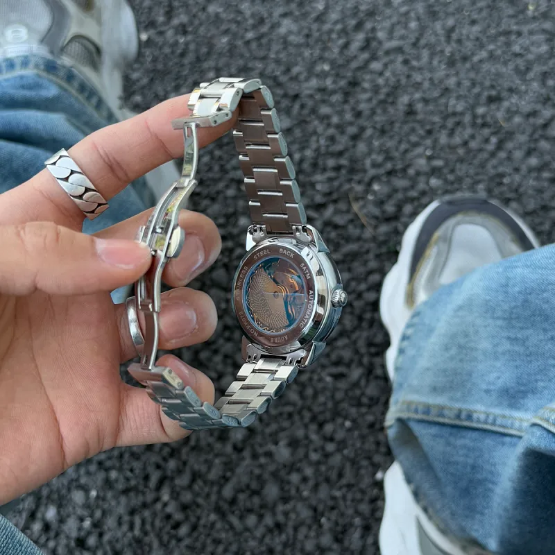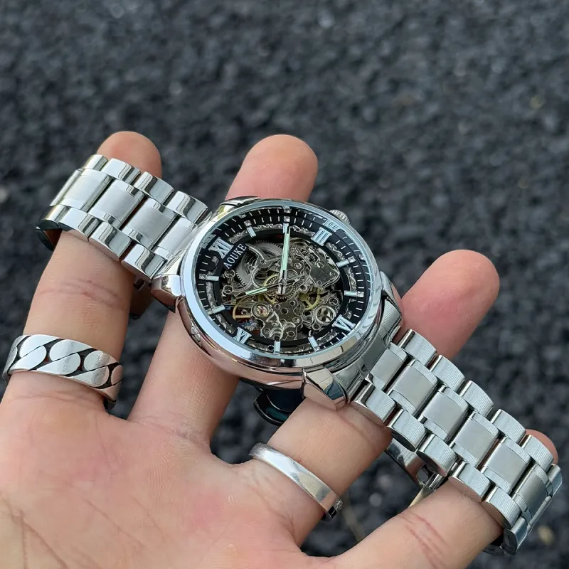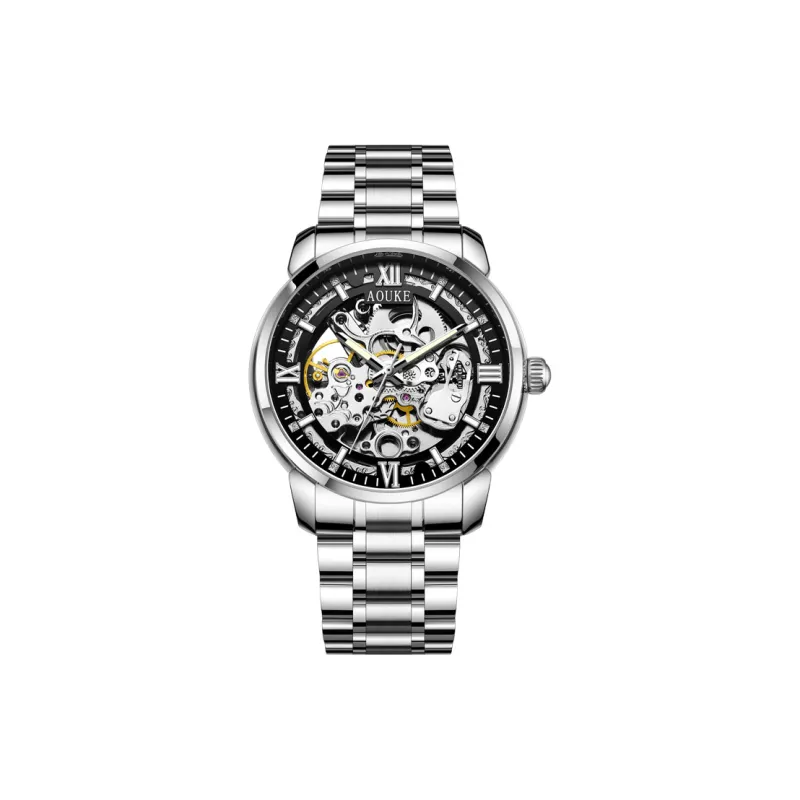 AOUKE Автоматический механический механизм металл ремешок часы унисекс циферблат с открытым механизмом