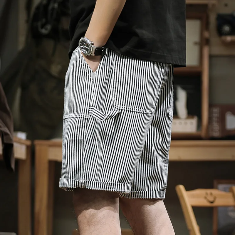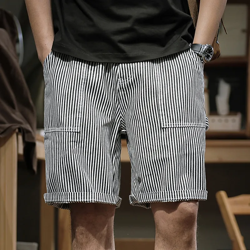 AOYU Черно-белые полосы Унисекс Джинсовые шорты