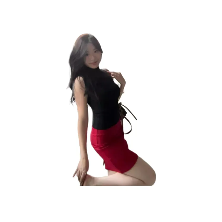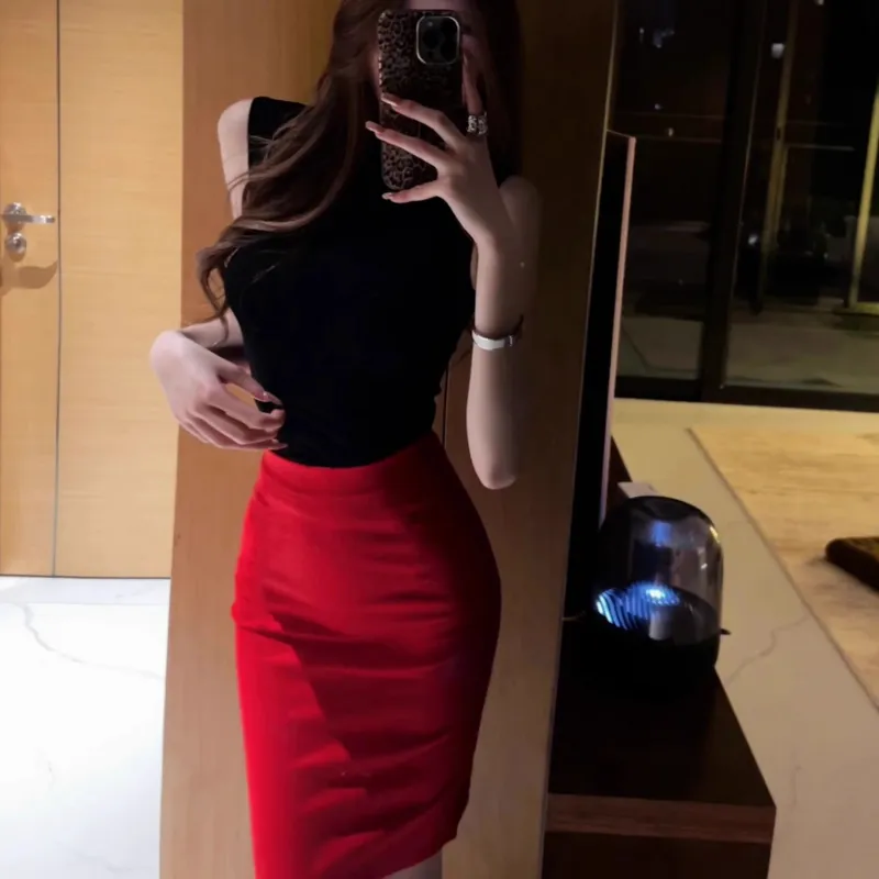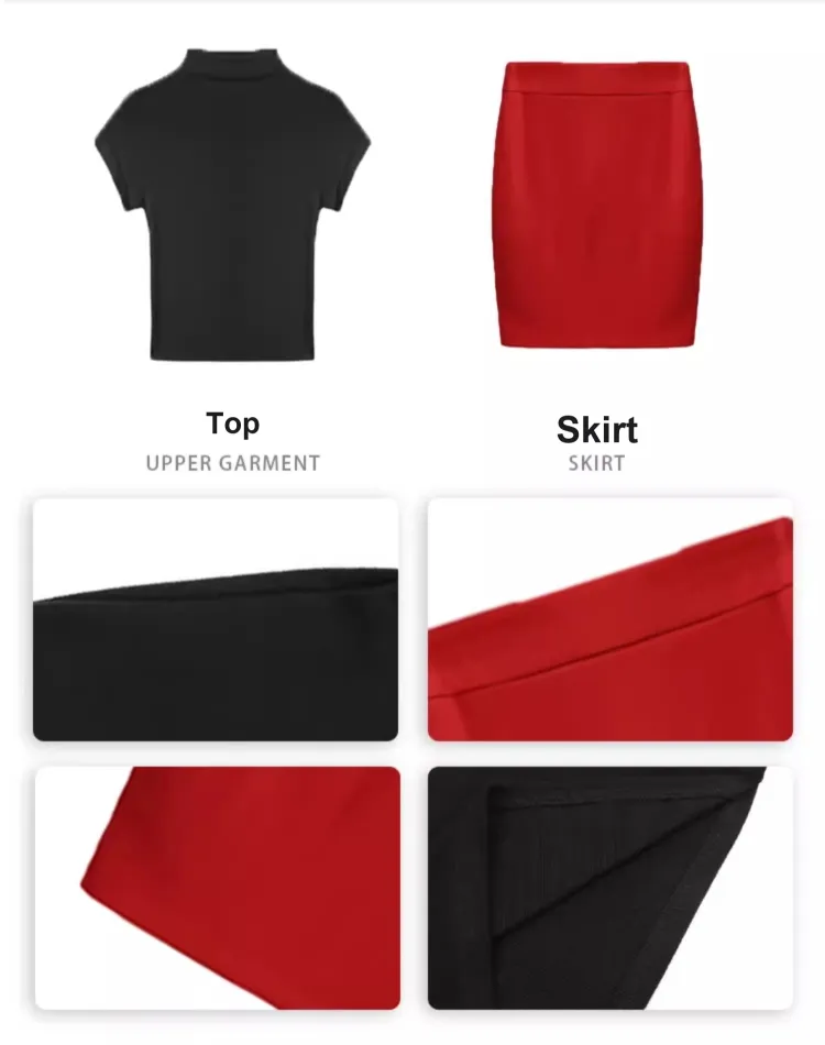 Комплект:Чёрный топ + Красная юбка