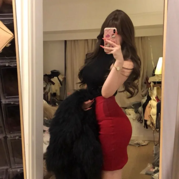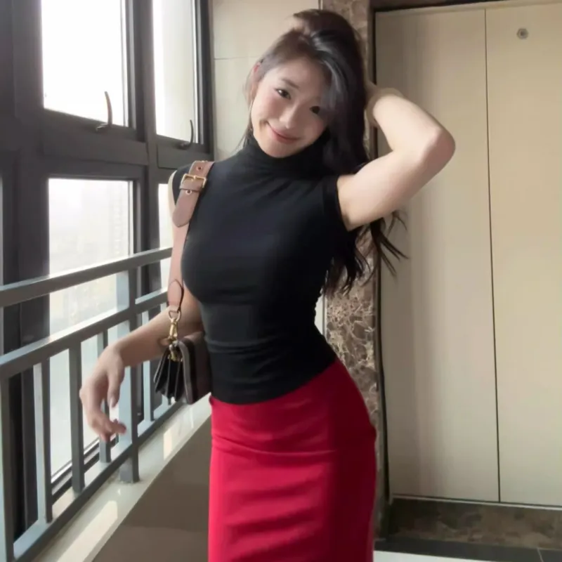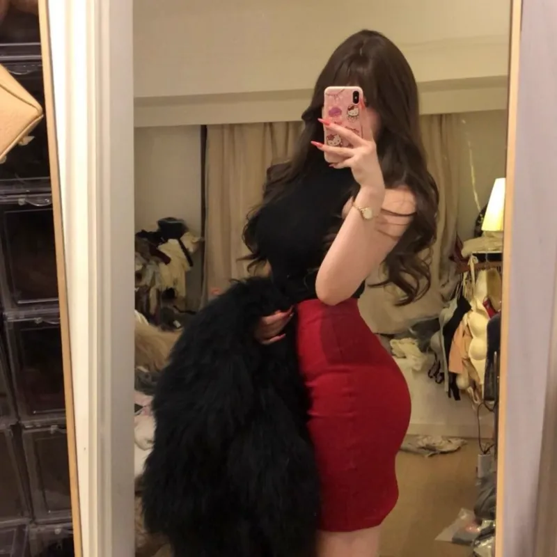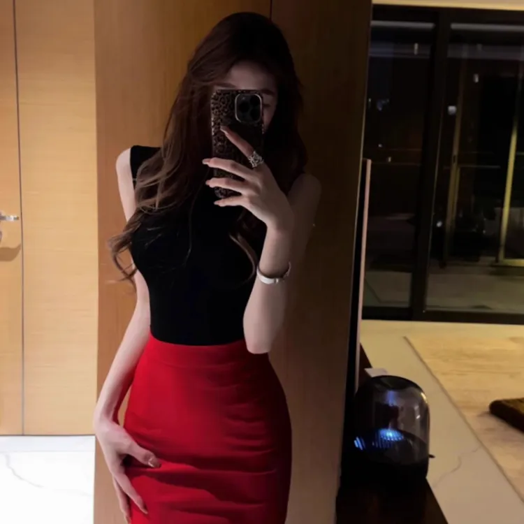 Чёрный топ + Красная юбка