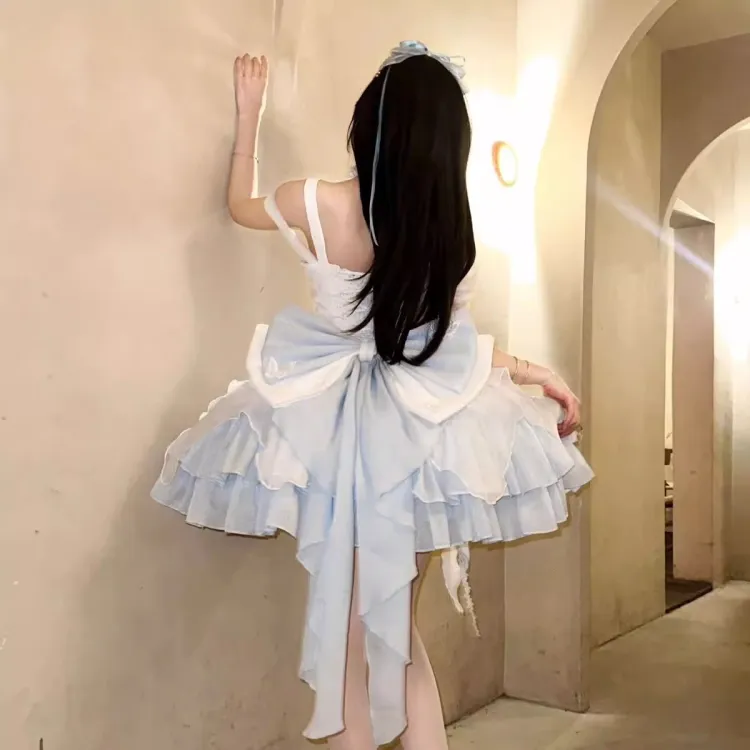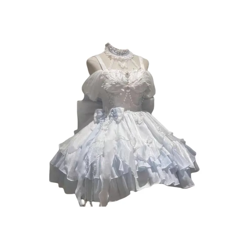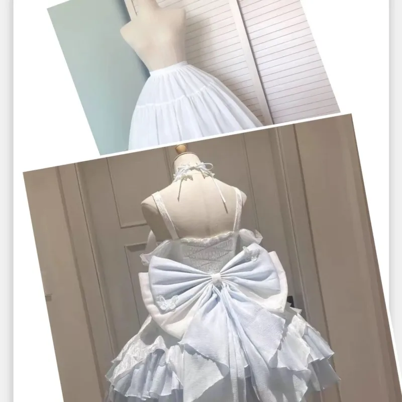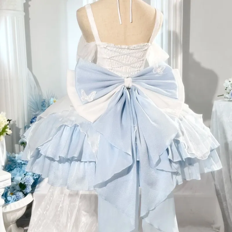 Цвет:Полный комплект: платье + хвост платья + подъюбник, белый и синий