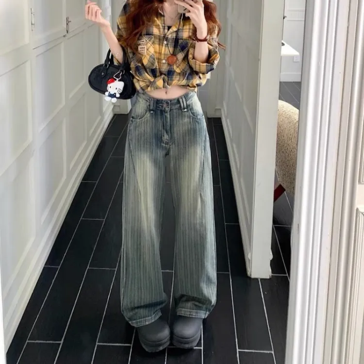 ARIADNAW STUDIO Джинсы Женские Синие в Полоску