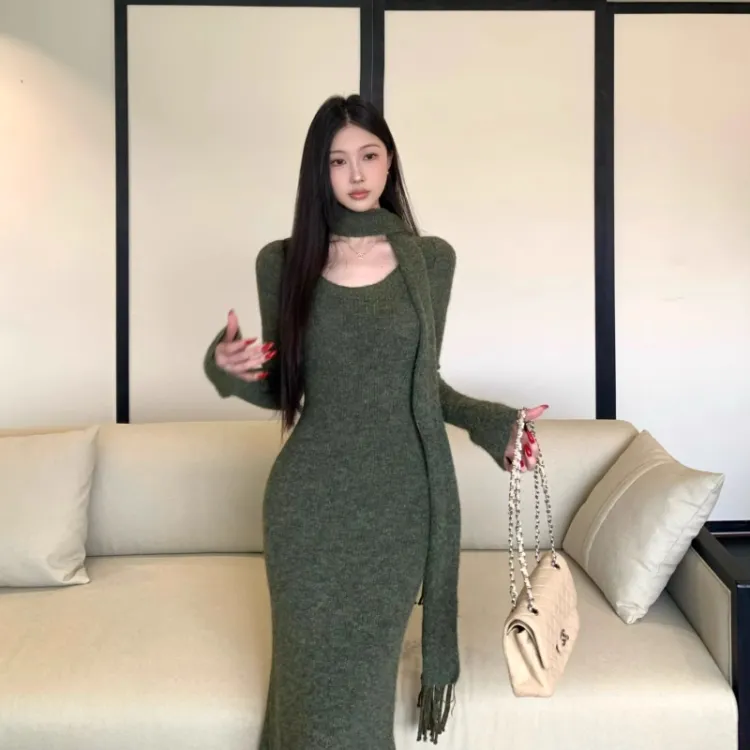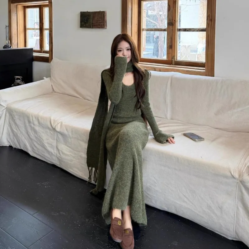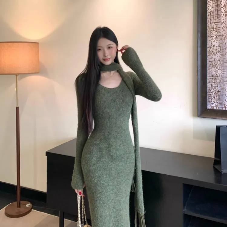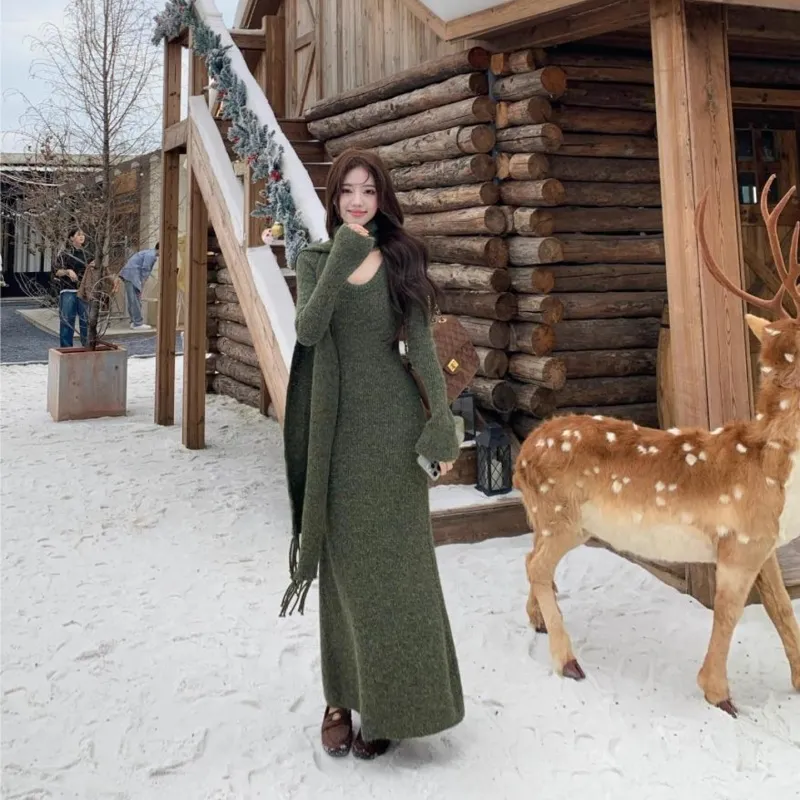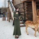 ARIADNAW STUDIO Зеленый Женский Длинный С рукавами Платья