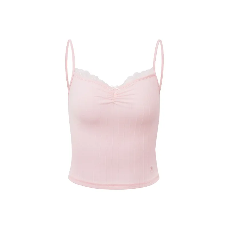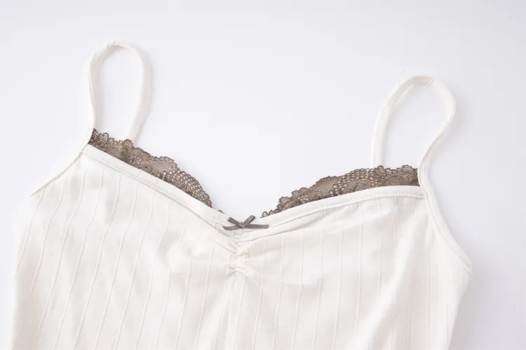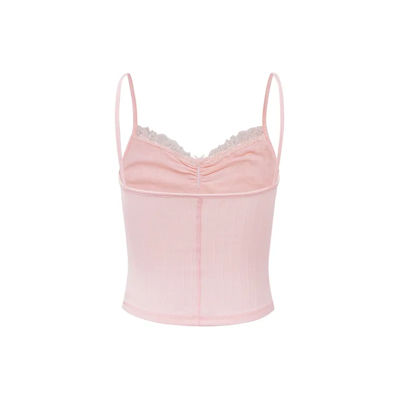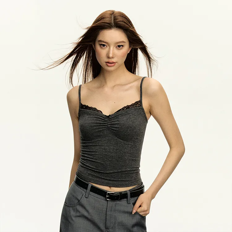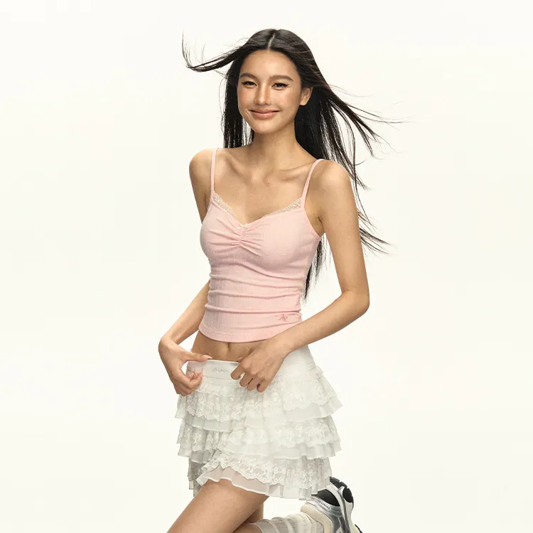 Ariseism Дизайн Контрастный цвет Кружево Укороченный Топ на бретелях Женские