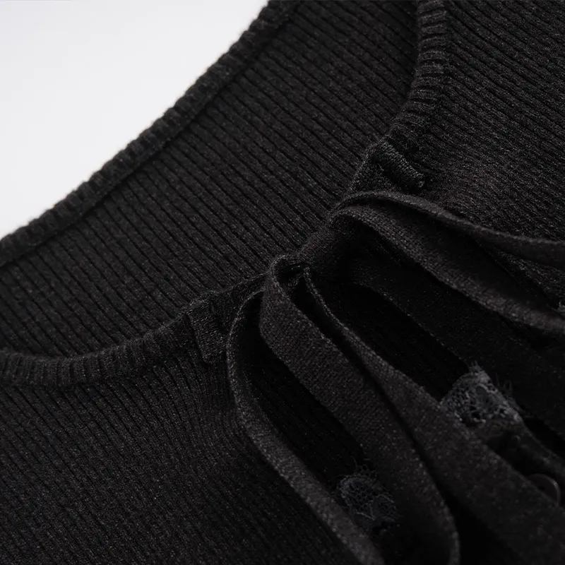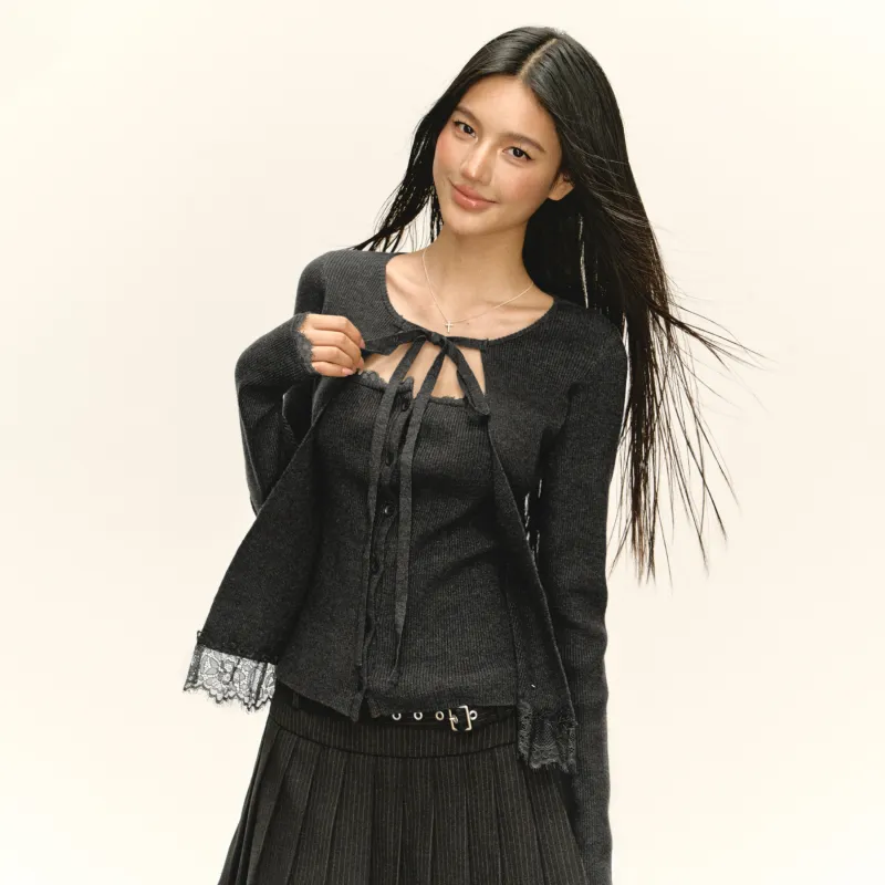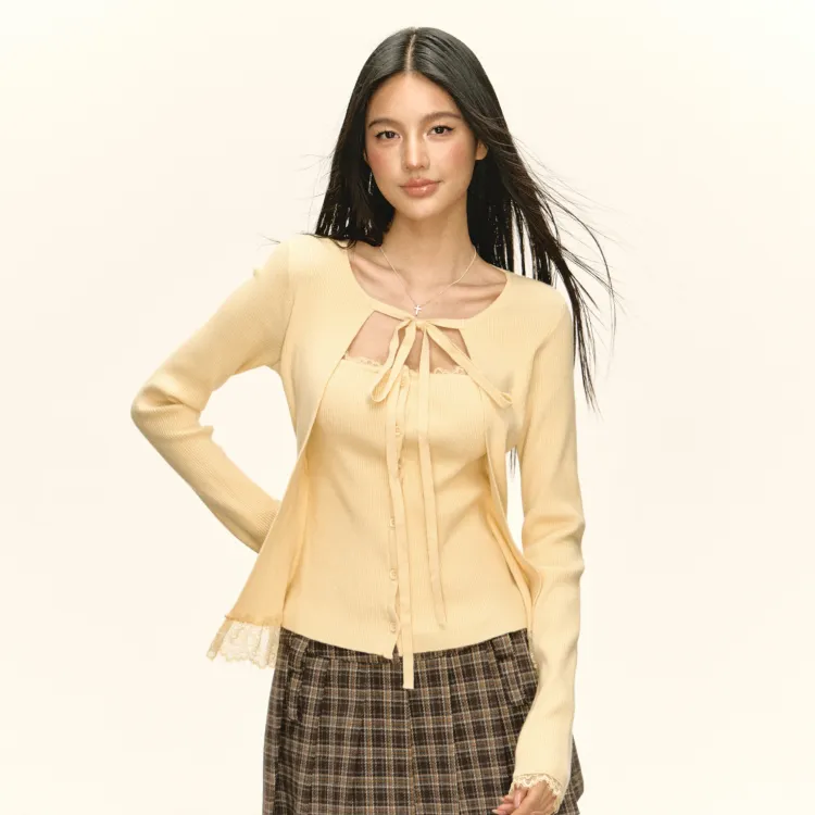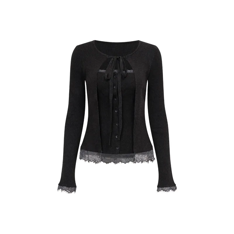 Ariseism Дизайн Пэчворк Кружево Отделка Mock Два Предмета Трикотаж Женские