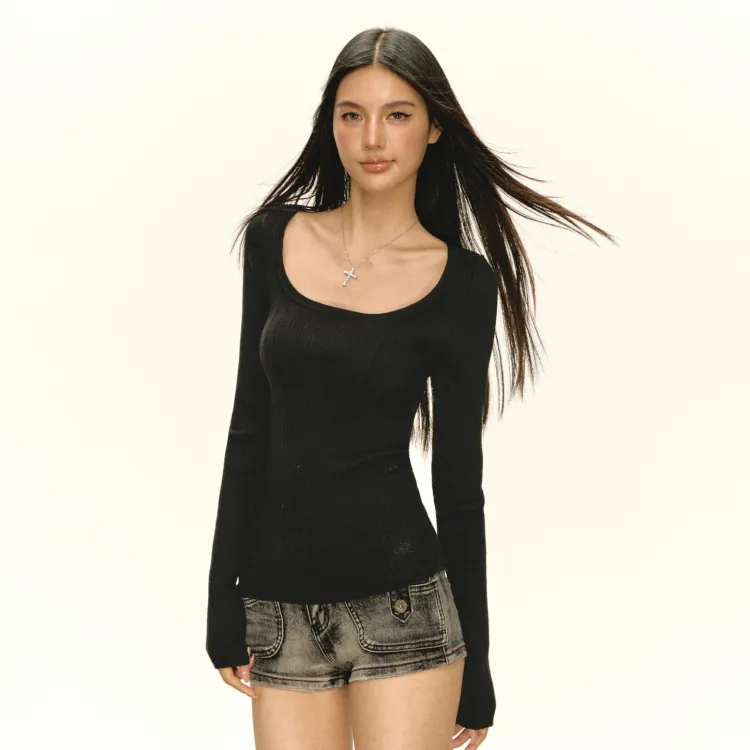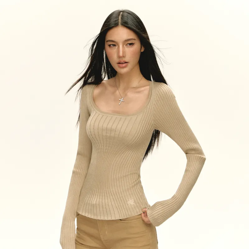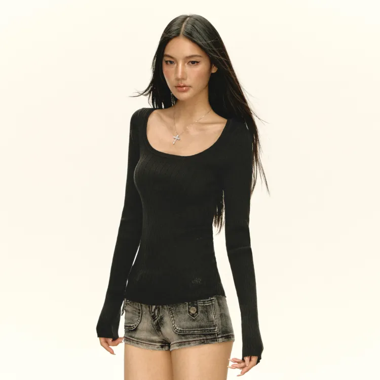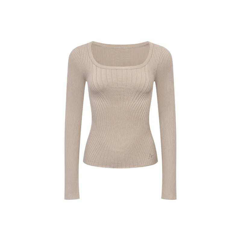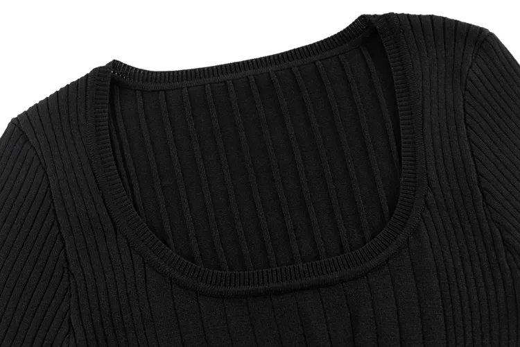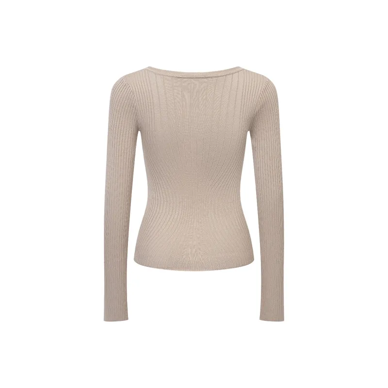 Ariseism Внимание на детали Утяжка на талии Трикотажная ткань Свитер Для женщин Осенний Однотонный Облегающий крой Топ