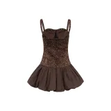 Ariseism Леопардовый принт Киль Slip Платье Для Женщин Лето Юбка Женская