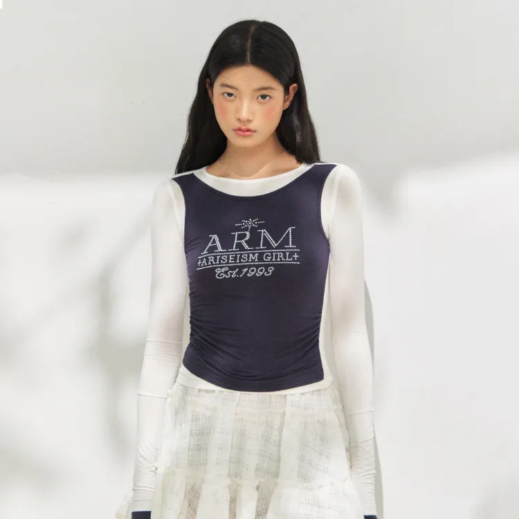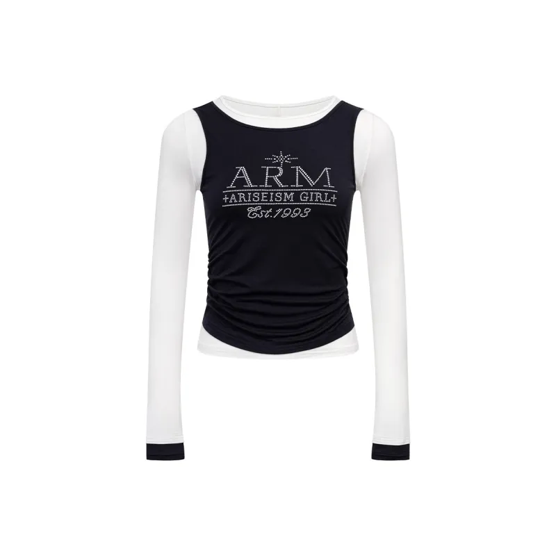 Ariseism Mock Два предмета Длинный рукав Т-рубашка для женщин осенняя облегающий крой топ для женщин