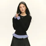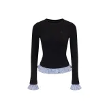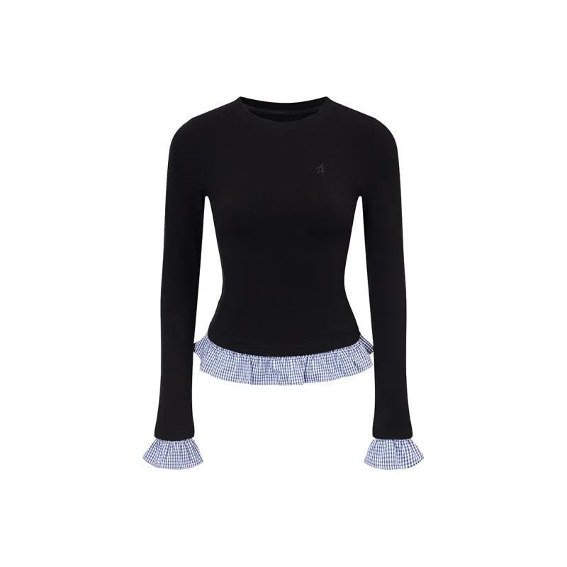 Ariseism Стандартный Дизайн Пэчворк Mock Два предмета Многоцветный Длинный С рукавами Женский Осенний Облегающий крой Топ Женский