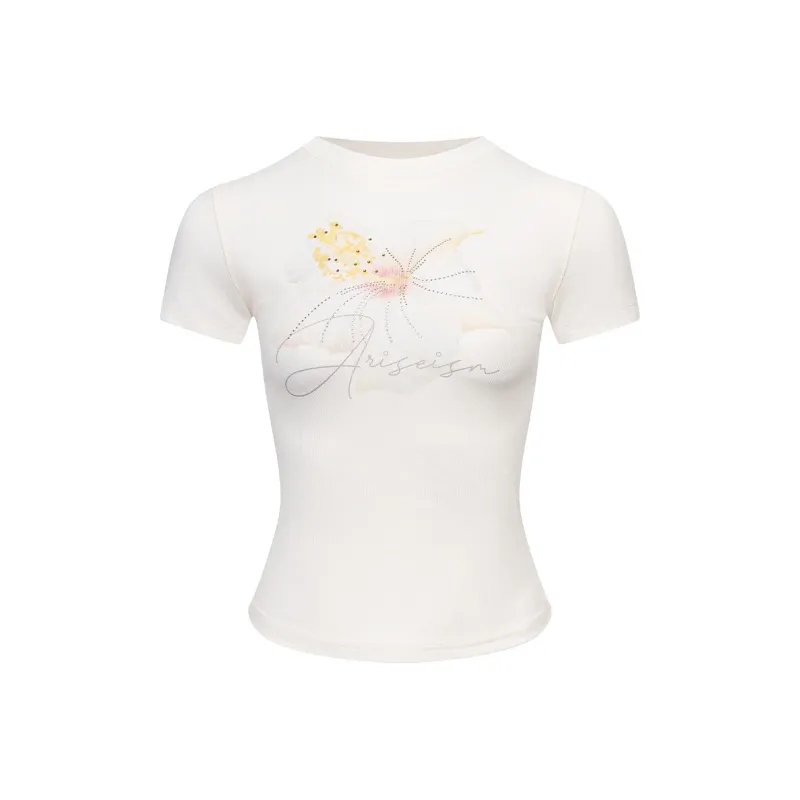 Ariseism Обычный Цветочный Короткий Рукав T-Рубашки для Женщин Летний Облегающий крой Топы Женские