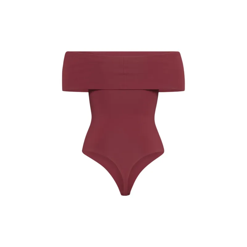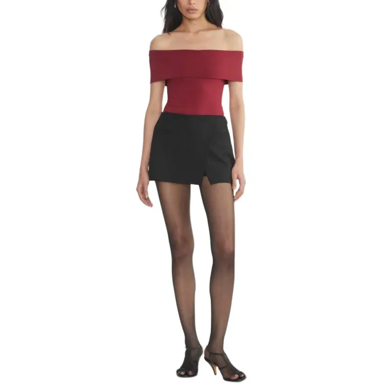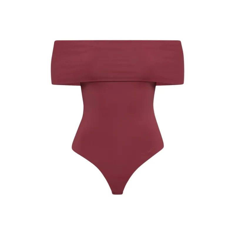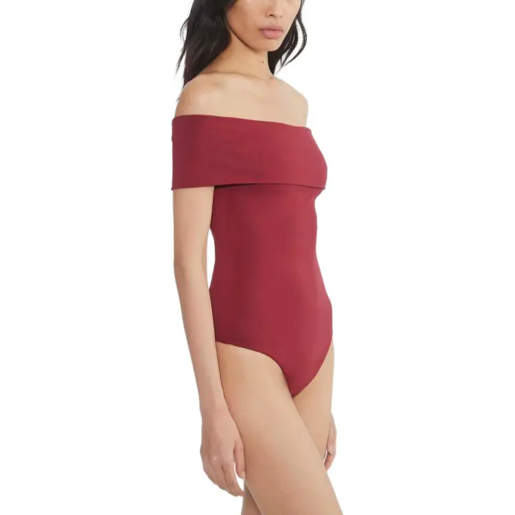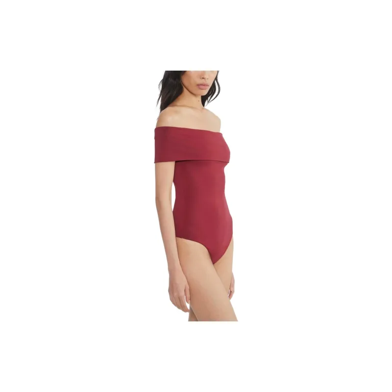 Aritzia Тень Off Плечо Bodysuit Комбинезон Женские Темный RUBY RED Темный Камень-красный