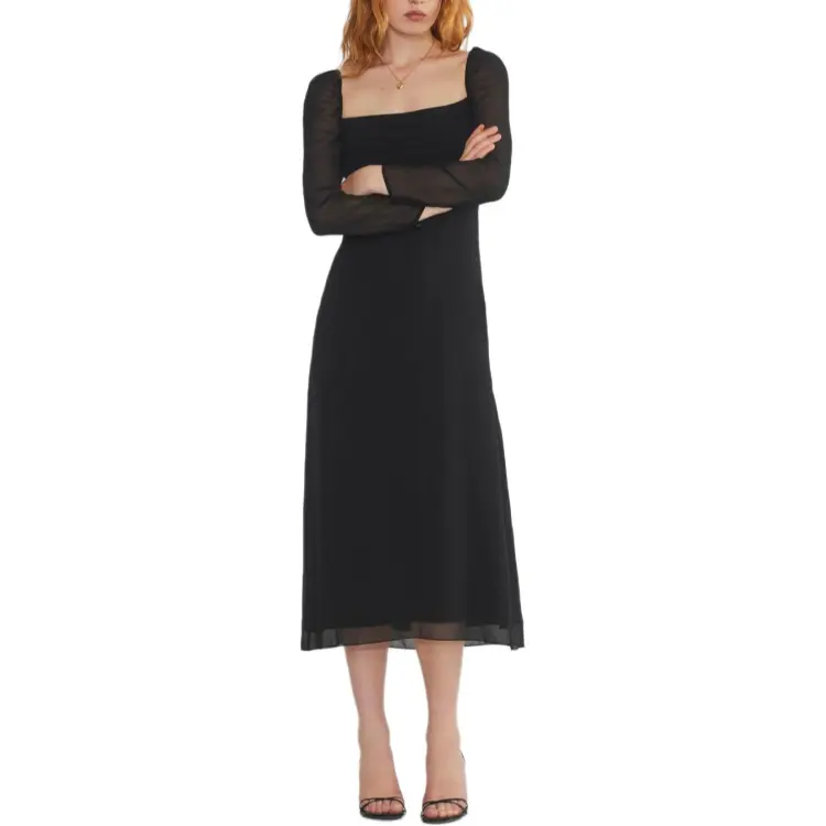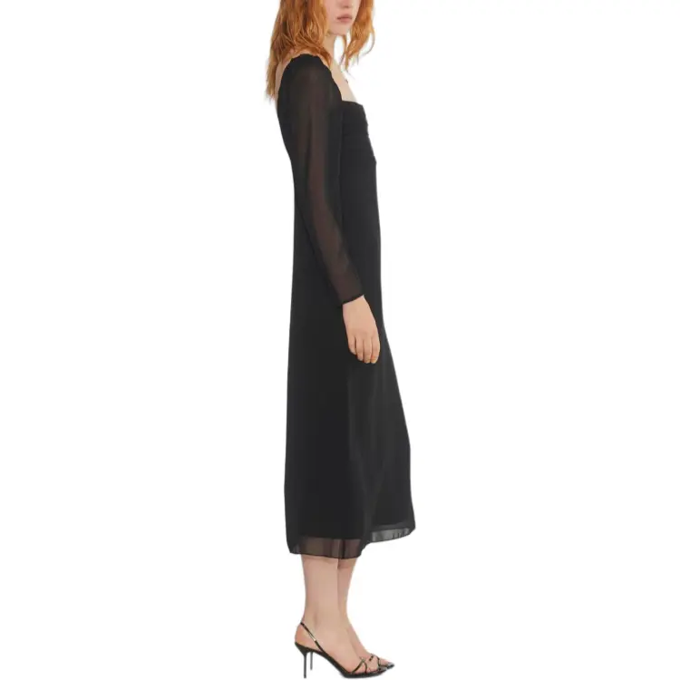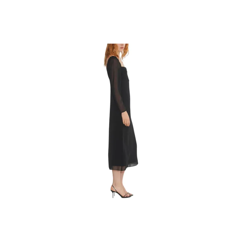 ARITZIA FW24 WILFRED AMUSE Длинный рукав Платье-миди Длинное платье с рукавами Женское Черное Черное