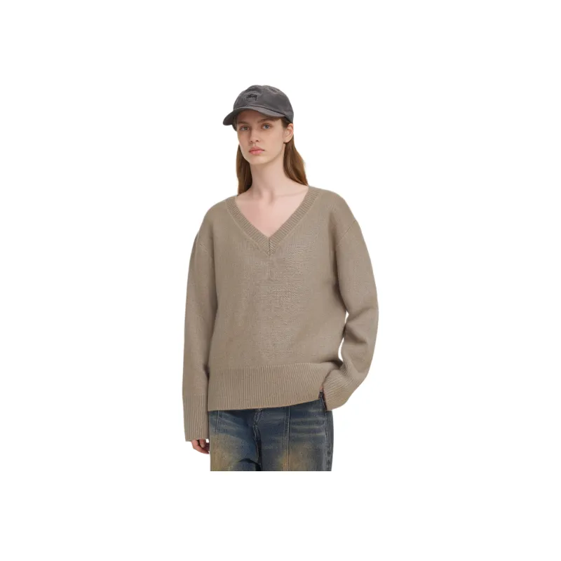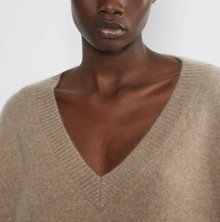 ARITZIA Плюшевый кашемировый oversized V-образный вырез свитер кашемировый свитер женский Фотиния Nomad серый умбра